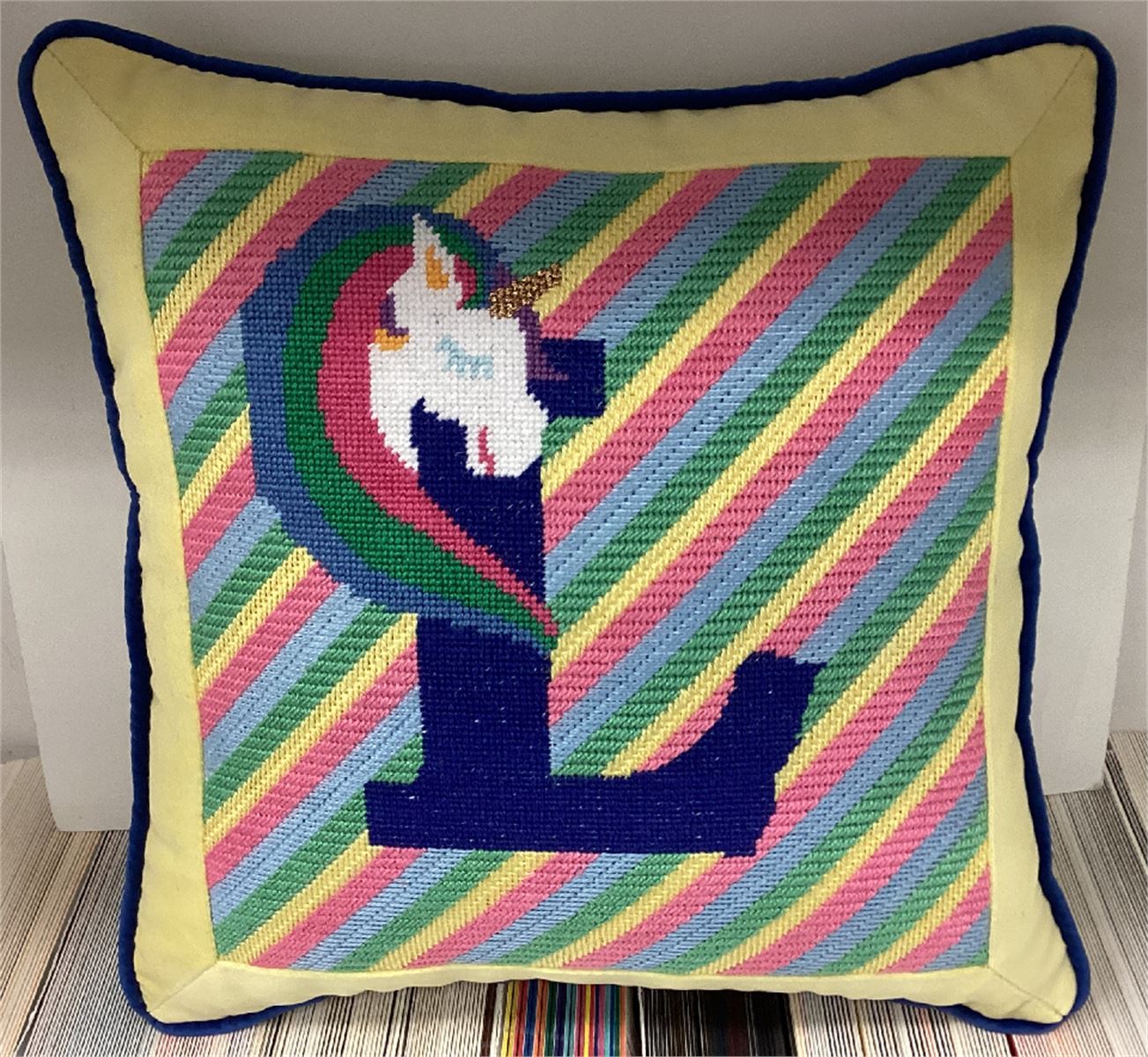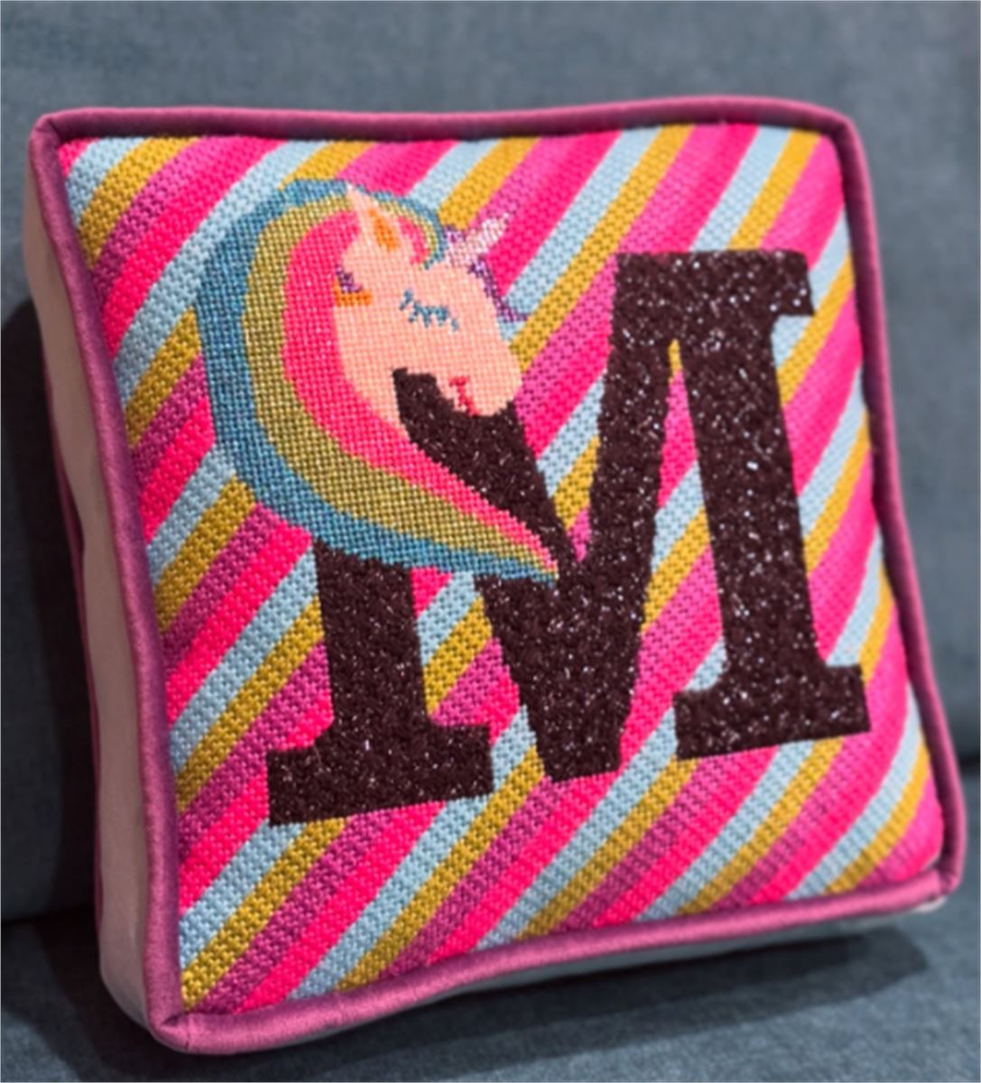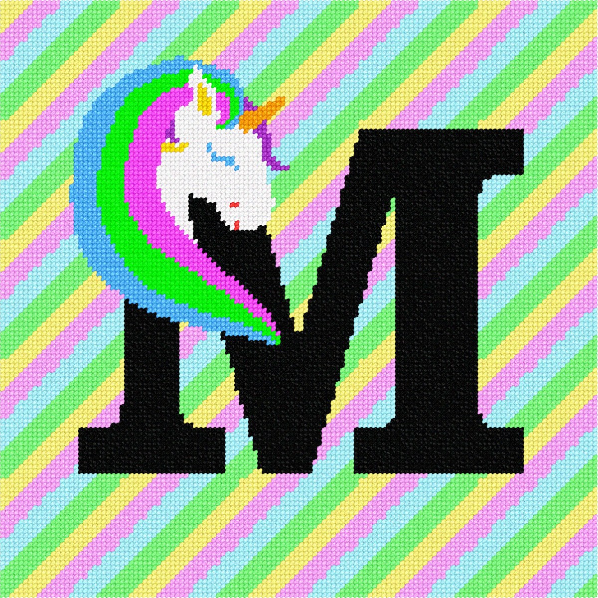 Unicorn is a popular party theme for girls. According to Google, The Unicorn Trend is a type of fad in which there is a tendency to design, produce and use consumer objects adorned with a rainbow and/or vibrant color palette, typically composed of pastel or highly saturated colors such as pink, violet, yellow, blue and green. Aside from the obvious mythological creature, the unicorn theme can encompass a lot of different elements. Essentially, it's a happy go lucky, fun, fantasy theme with plenty of sweetness and sparkles. So if unicorns are your thing, stitch this alphabet initial Letter M.