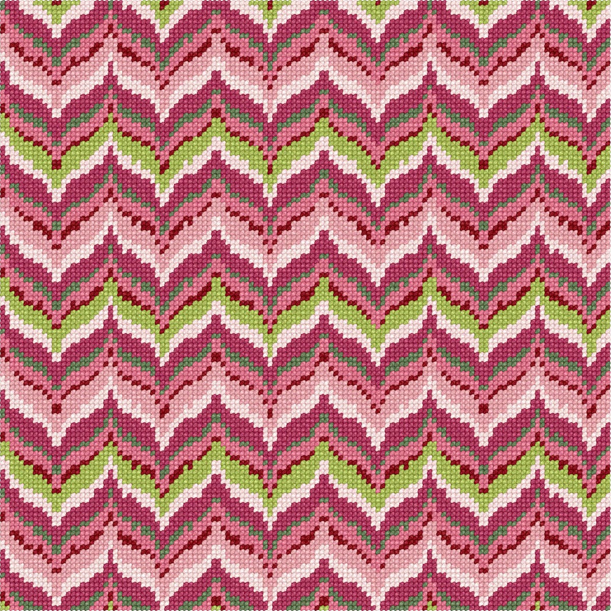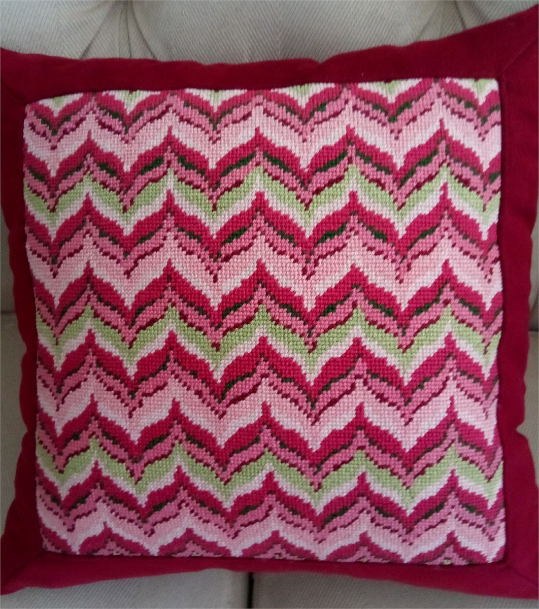 Our brand new mauve collection is available in a multitude of stripes, florals, and trellis designs. Ideal for coordinating needlepoint pillows. Bargello is a type of needlepoint embroidery consisting of upright flat stitches laid in a mathematical pattern to create motifs. The name originates from a series of chairs found in the Bargello palace in Florence, which have a "flame stitch" pattern. Traditionally, Bargello was stitched in wool on canvas. Embroidery done this way is remarkably durable. It is well suited for use on pillows, upholstery and even carpets, but not for clothing. In most traditional pieces, all stitches are vertical with stitches going over two or more threads.