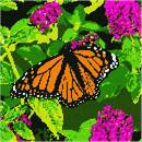 The monarch butterfly is one of the most recognizable butterflies. Its orange wings are laced with black lines and bordered with white dots. Famous for their seasonal migration, millions of them migrate from the United States and Canada south to California and Mexico for the winter. A single monarch butterfly weighs around one gram. This monarch butterfly is feeding on nectar from the flowers.
