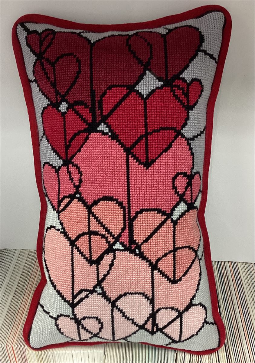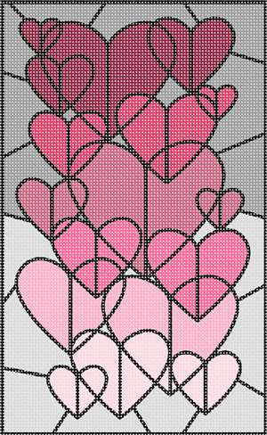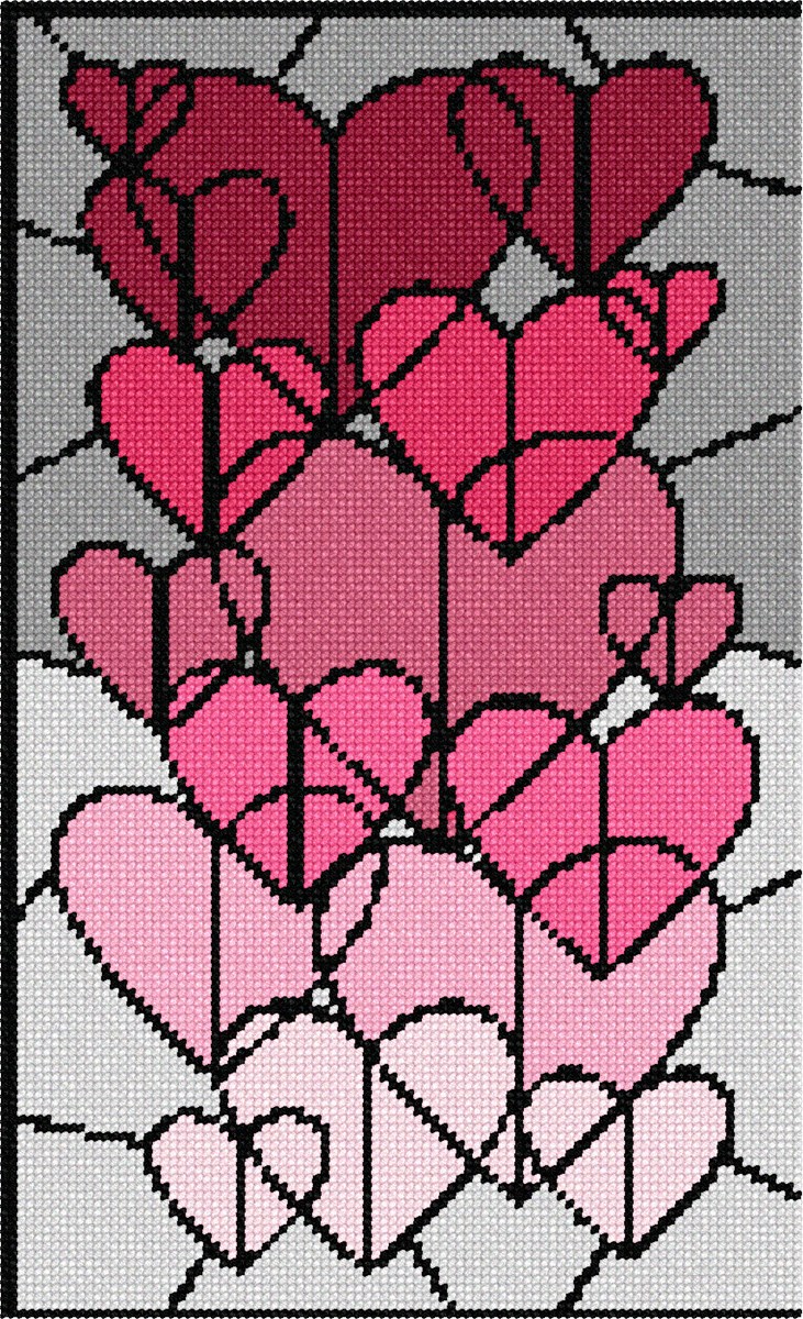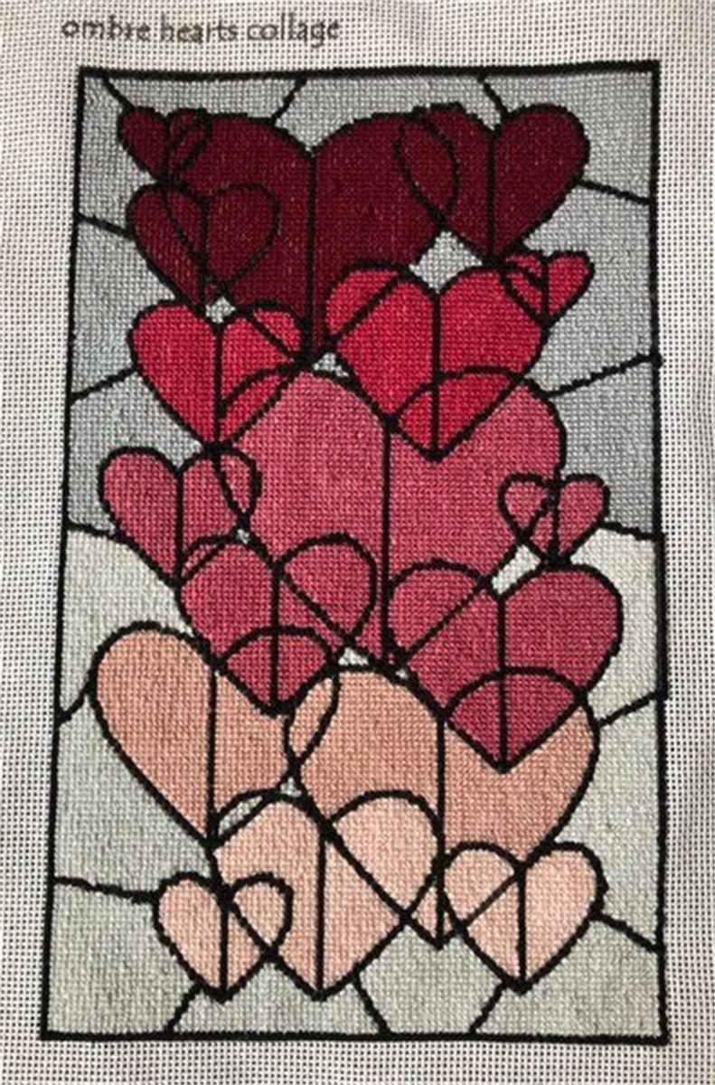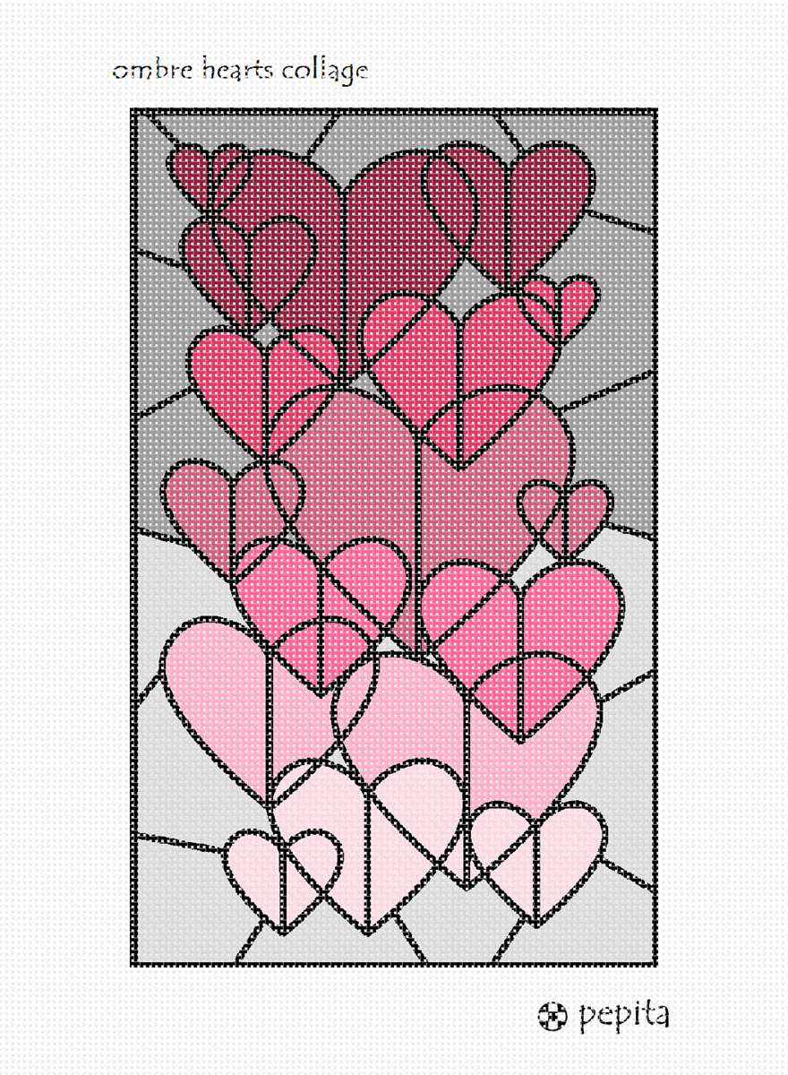 Hearts and hearts and more hearts! Enjoy stitching this collage in variegated tones of pinks.