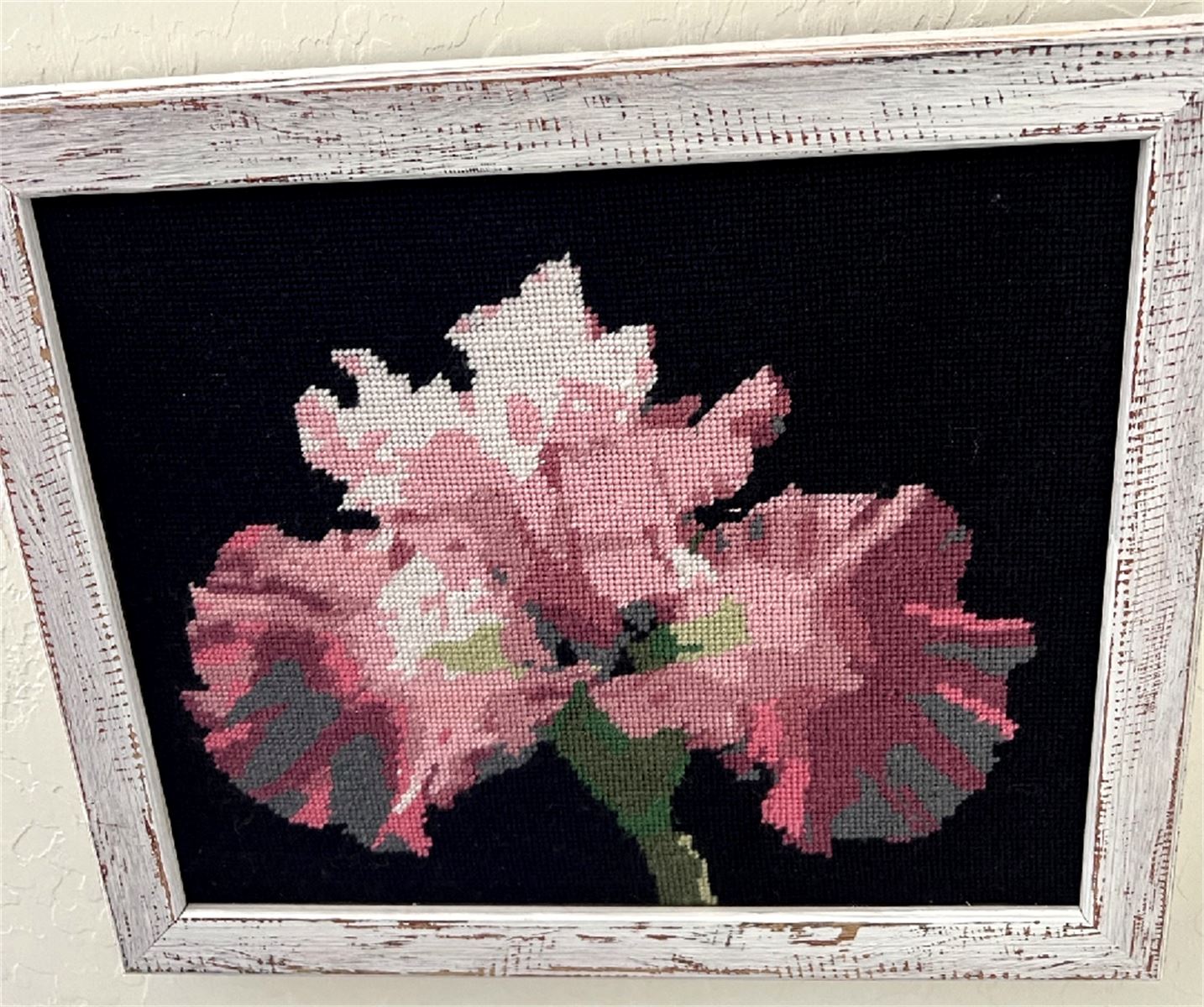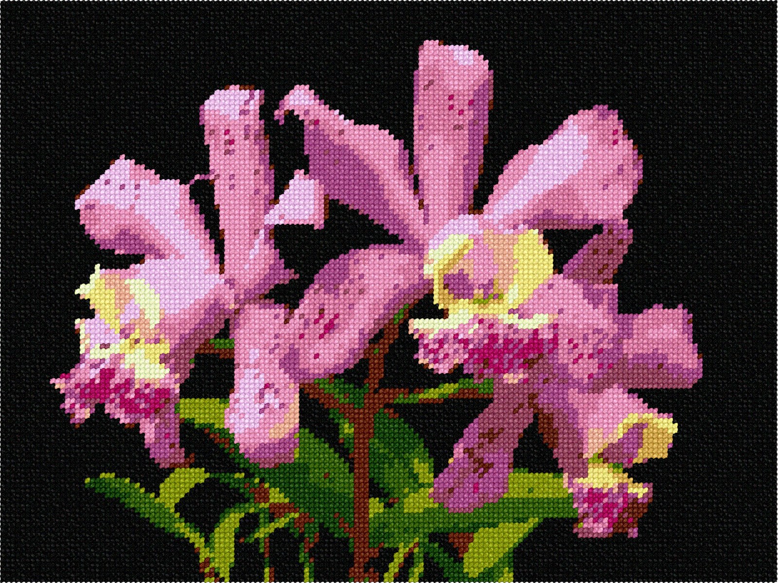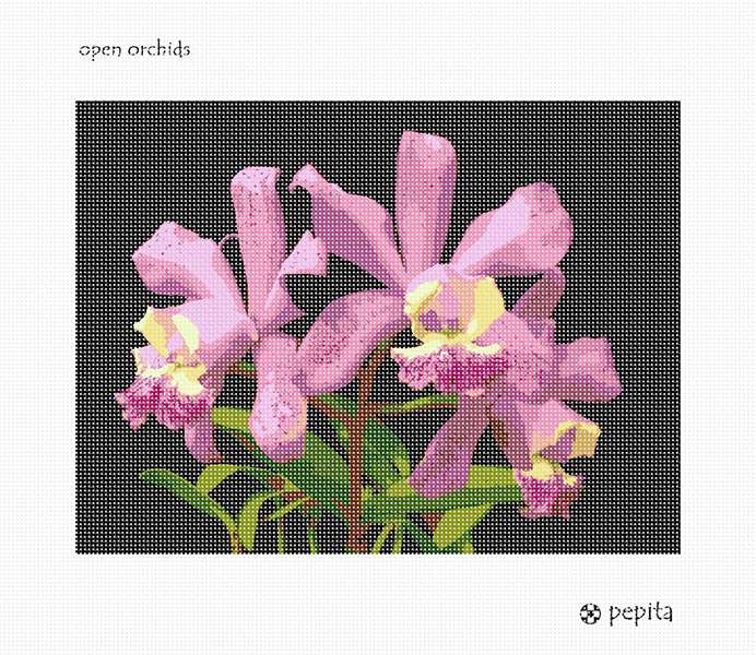 Orchids in bloom. Orchids are a most beautiful flower. They are available in many colors and variations. Interestingly enough, the best way to water an orchid is to place an ice cube on the soil. This way the water seeps in slowly. Flowers and floral design are among the most popular needlepoint designs. People have been stitching flowers and floral motifs for hundreds of years. Flowers are bright and pleasant, and most have underlying meanings to them.