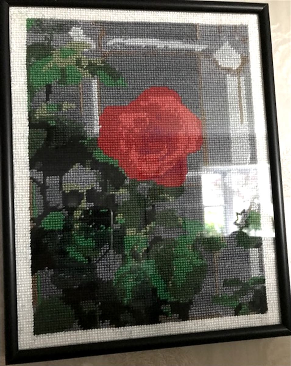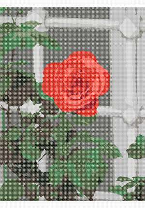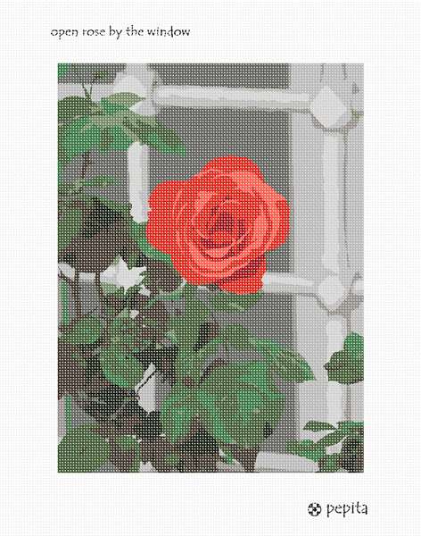 A red rose peeking through the window curtains at the inhabitants within. Red roses symbolize love and romance. Pink roses symbolize gratitude, grace, admiration, and joy. Orange roses symbolize enthusiasm and passion. Yellow roses symbolize friendship. White roses symbolize innocence and purity.