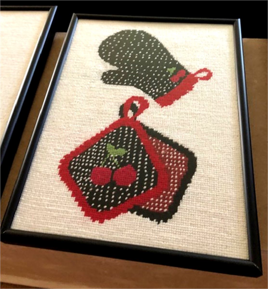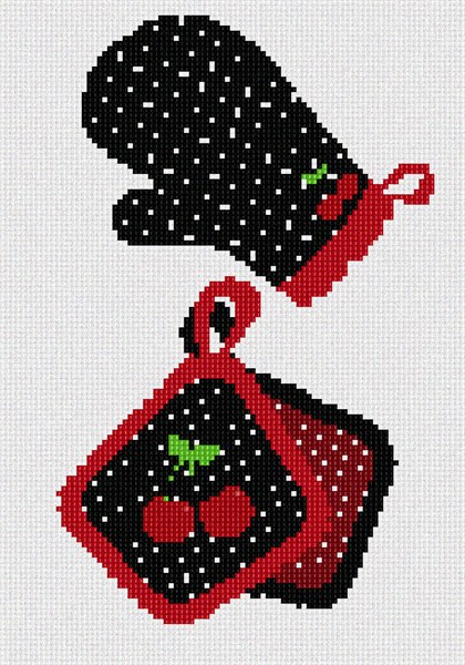 Polka dot oven mitts for mom's kitchen with cherries for decor.