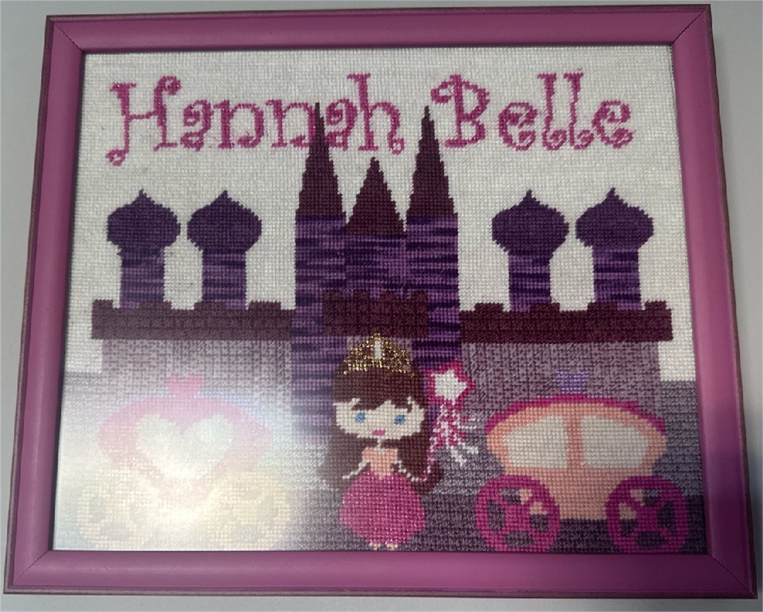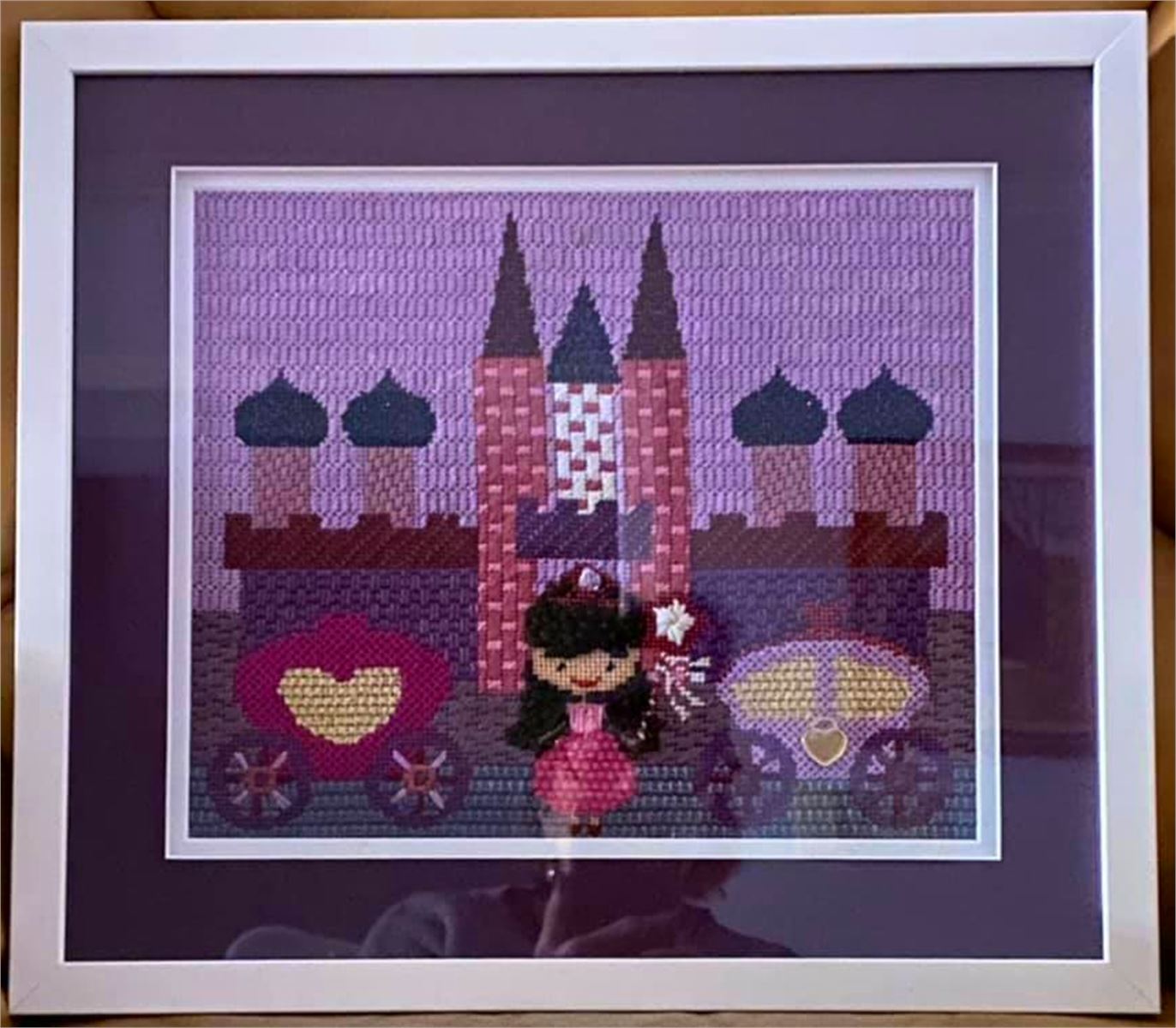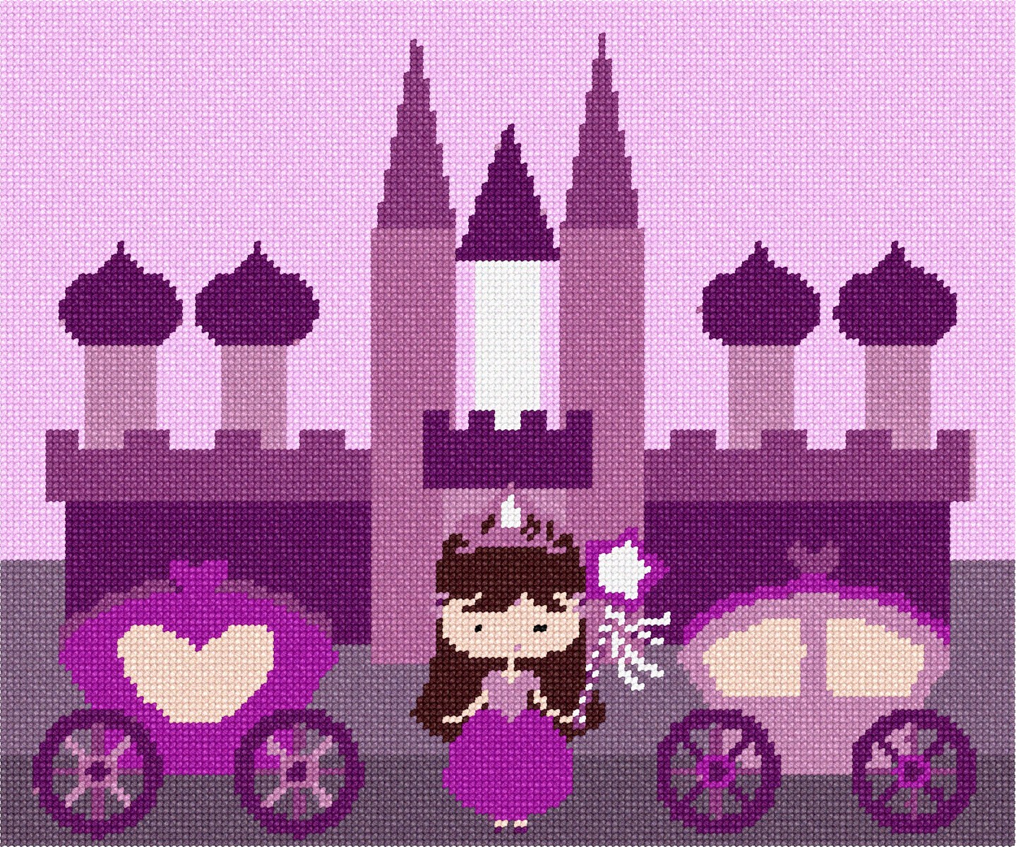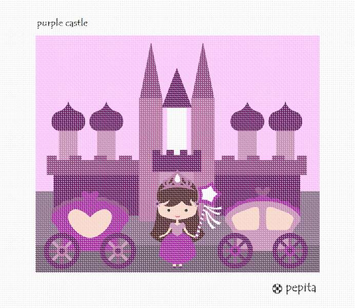Stitch a princess, a castle, and two purple carriages. The magic wand adds a magic touch.