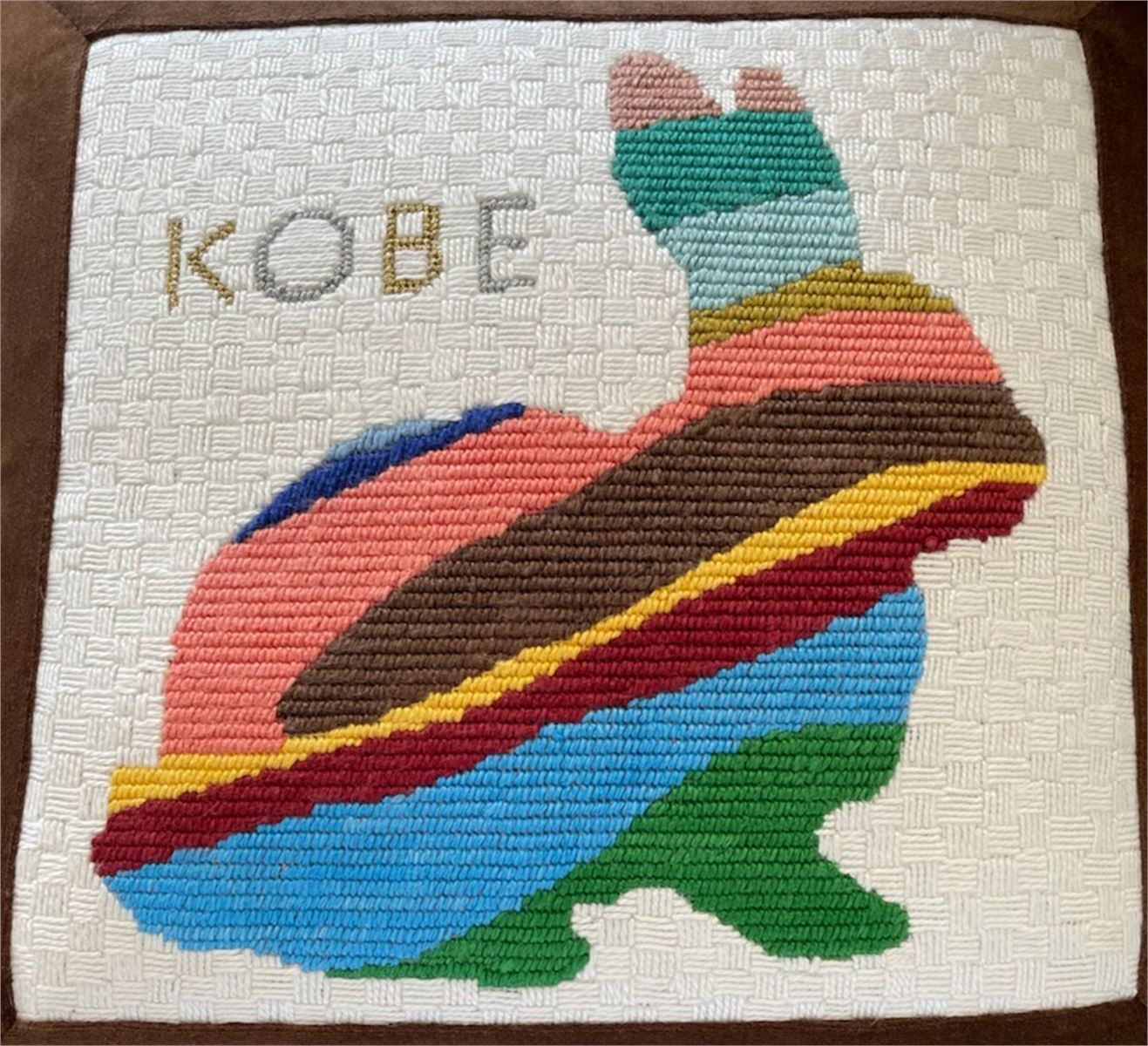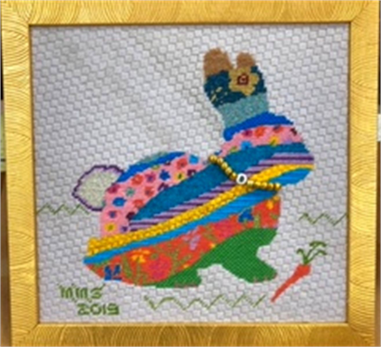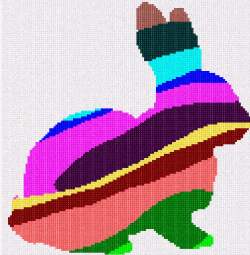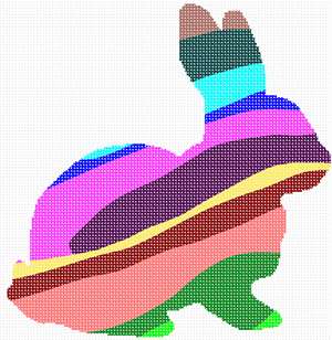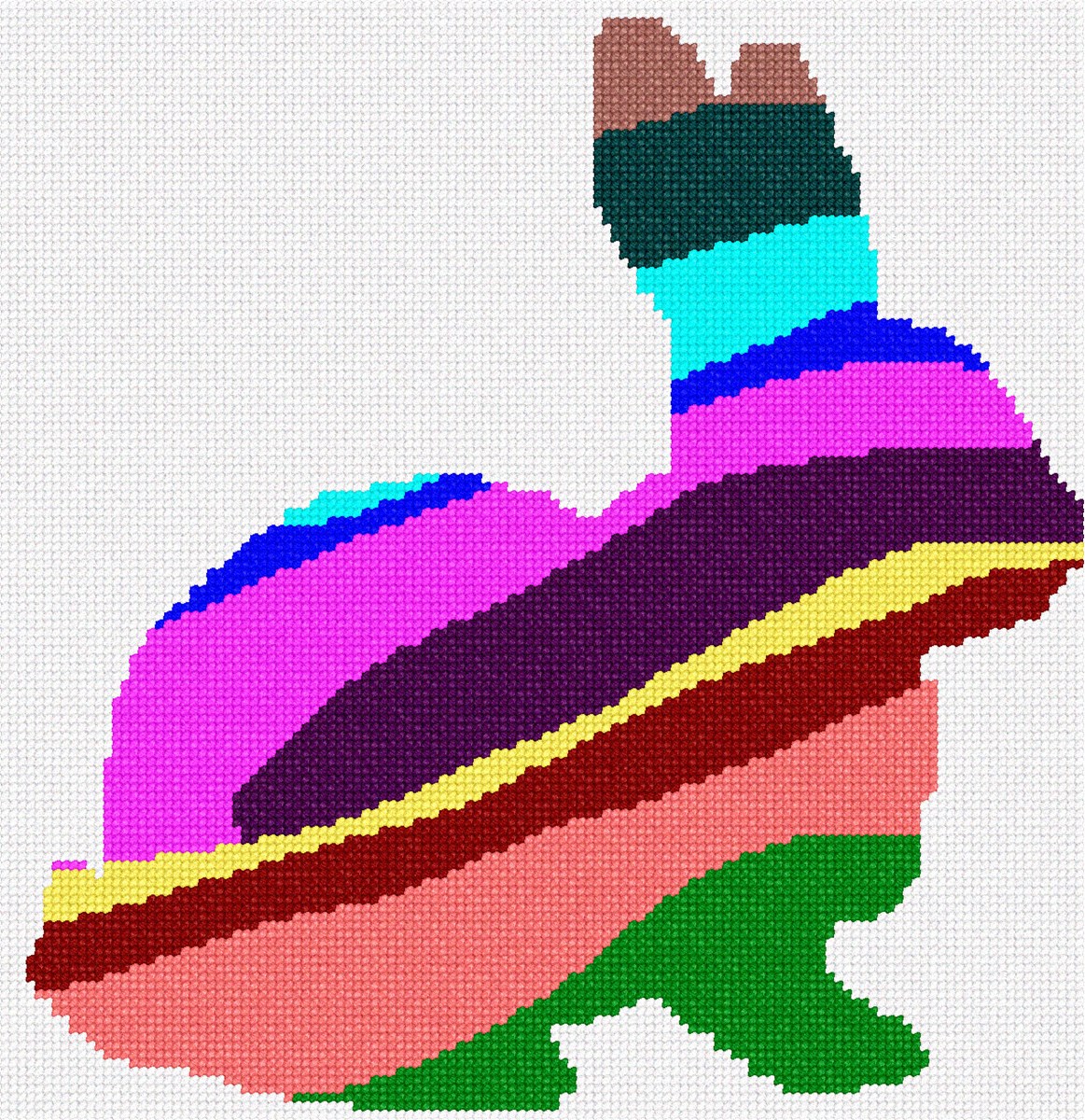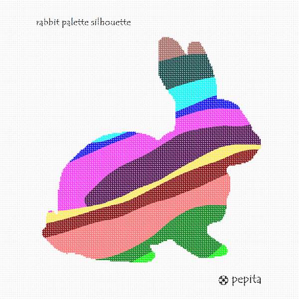 The shape of a bunny filled with colorful stripes. There are many animals in our palette silhouette series. This bunny is adorable and perfect for a beginner. Purchase as a kit, or buy just the plain canvas if you have many color threads in your stash.