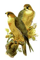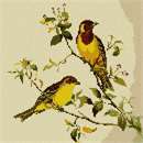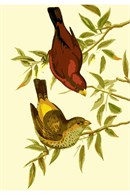 A pair of birds, painted in the 19th century by John Gould. This is a vintage illustration, but the red headed bunting is a beautiful bird. The red-headed bunting (Emberiza bruniceps) is a passerine bird in the bunting family Emberizidae, a group now separated by most modern authors from the finches, Fringillidae. It breeds in central Asia. It is migratory, wintering in India and Bangladesh.