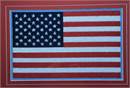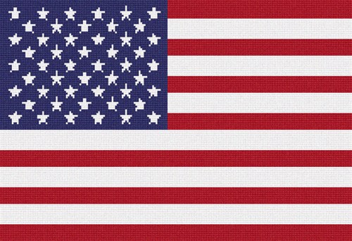 The national flag of the United States of America. Thirteen equal horizontal stripes of red (top and bottom) alternating with white, with a blue rectangle in the canton bearing fifty small, white, five-pointed stars. The fifty stars on the flag represent the 50 states and the 13 stripes represent the original thirteen colonies that rebelled against the British monarchy and became the first states in the Union.
