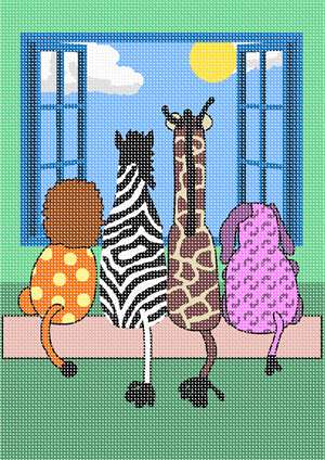 Animals looking out at the sunshine. Ideal for a child's play area