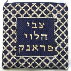 Jerusalem in primary colors. Jerusalem scenes are very popular judaica designs. Tefillin are gifted to a Jewish boy upon his bar mitzvah when he turns thirteen. He is taught how to perfom this holy Mitzvah properly before his birthday. You stitch the front. After it is completely stitched, it is sent to a professional finisher who adds a lining, back, and matching zipper.