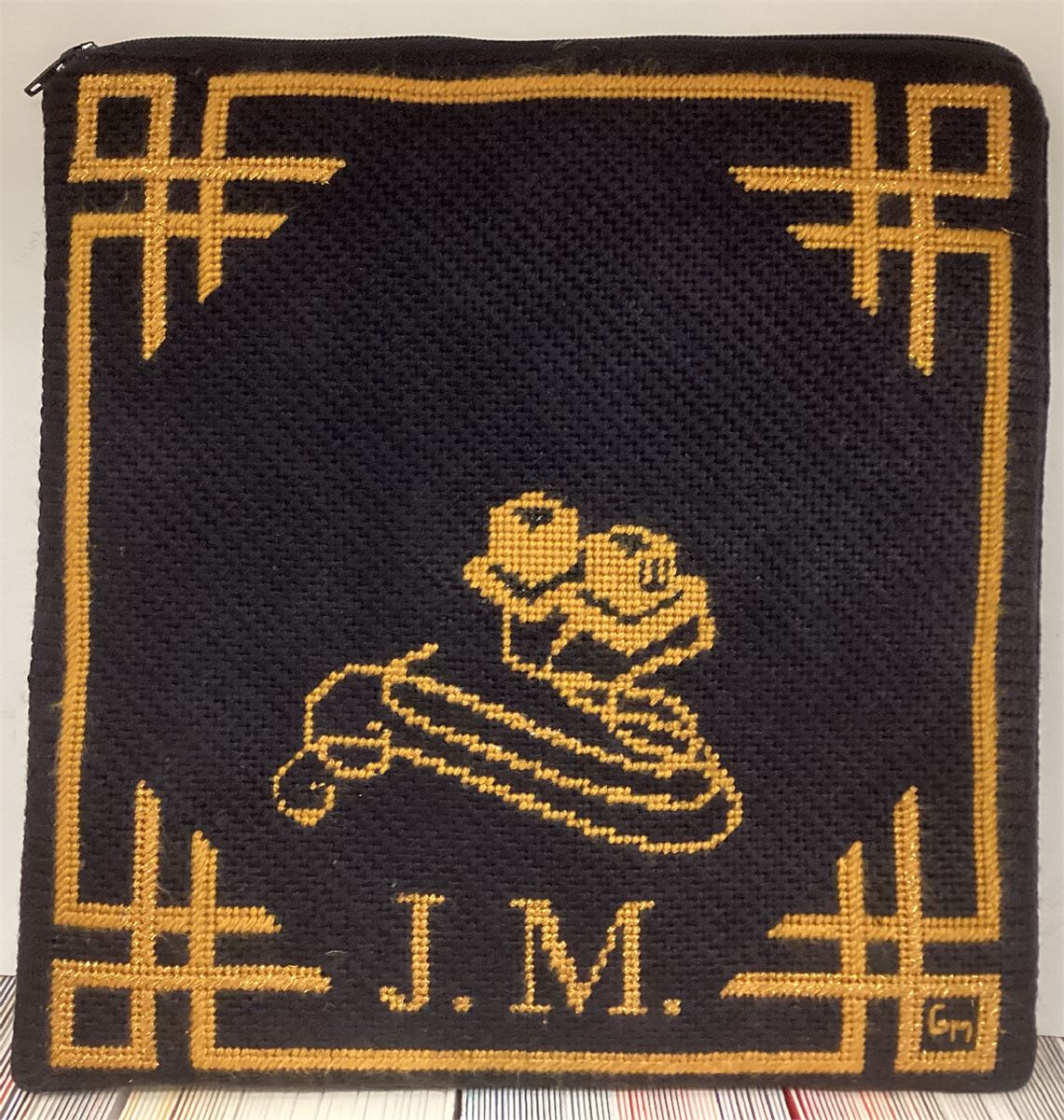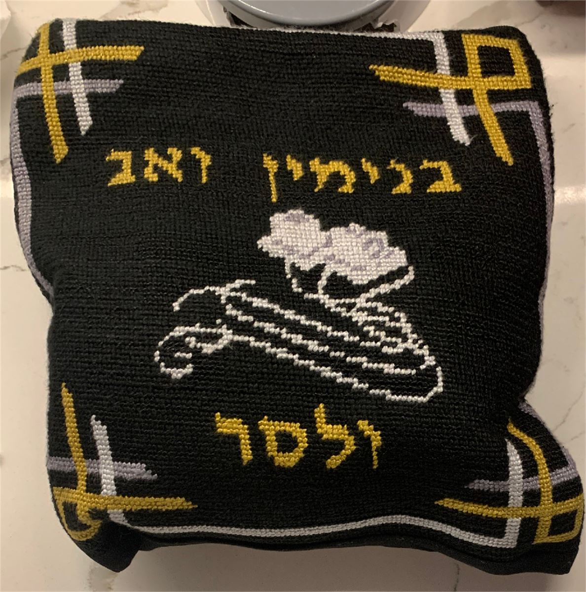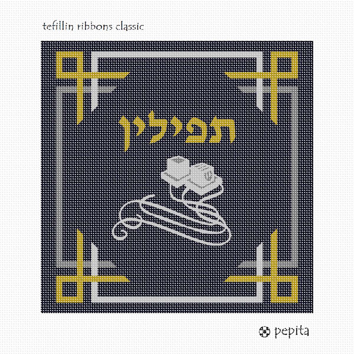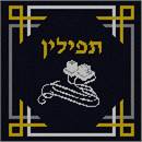 Combining classic with classy. This design shimmers from the metallic thread. Tefillin are gifted to a Jewish boy upon his bar mitzvah when he turns thirteen. He is taught how to perfom this holy Mitzvah properly before his birthday. You stitch the front. After it is completely stitched, it is sent to a professional finisher who adds a lining, back, and matching zipper.
