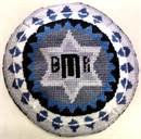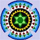 Kippah using a circular toothy pattern in vivid and contrasting colors. A kippah is a brimless cap, usually made of cloth, traditionally worn by Jewish males to fulfill the customary requirement that the head be covered. It is worn by men in Orthodox communities at all times.