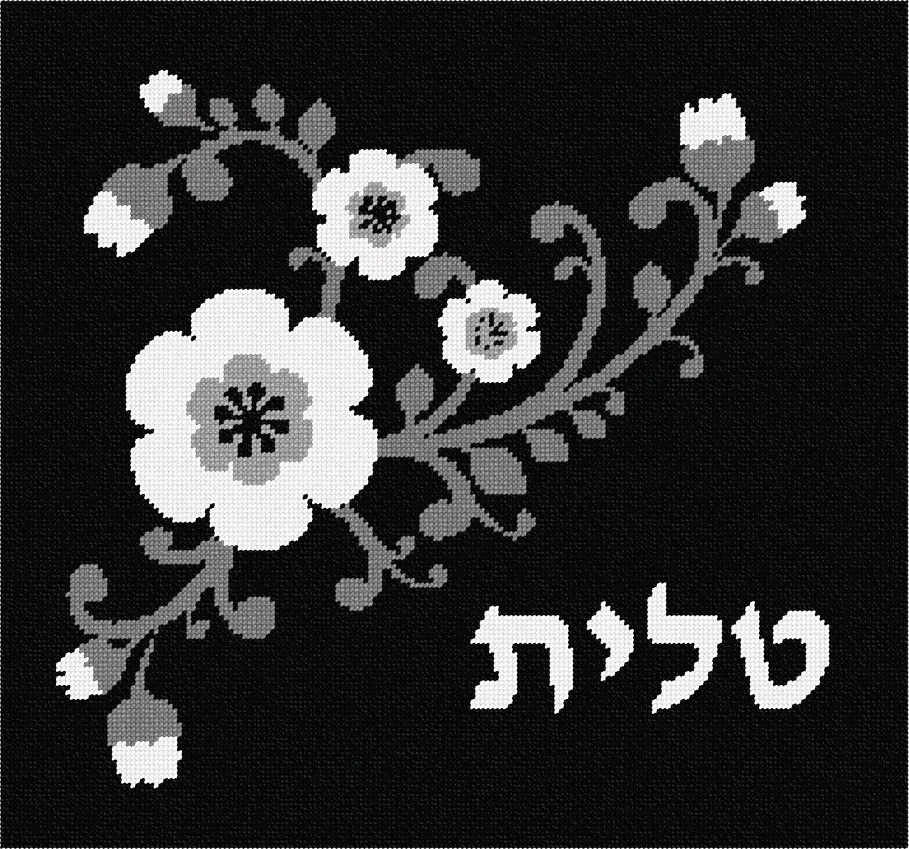 Large Tallit Flowers Buds Black White