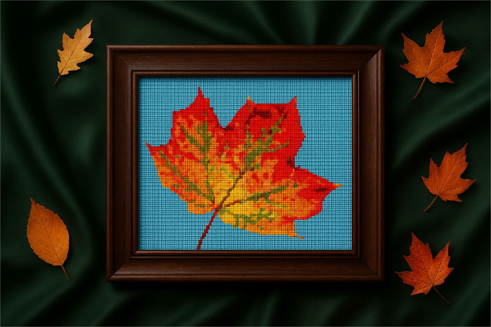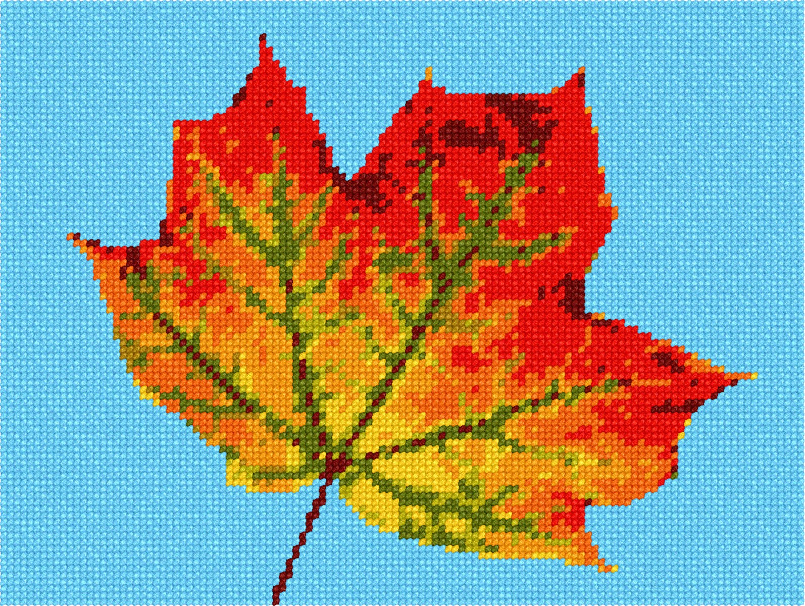 This leaf up close is a perfect project for autumn. There are so many shades of color in this leaf. Even though it's not quite dark out since the background sky is blue and shining.