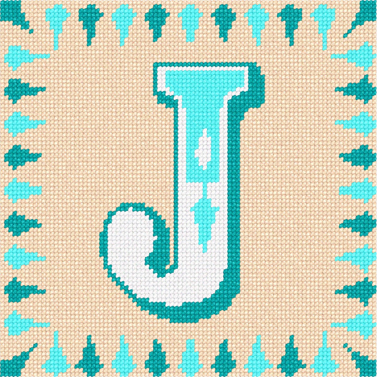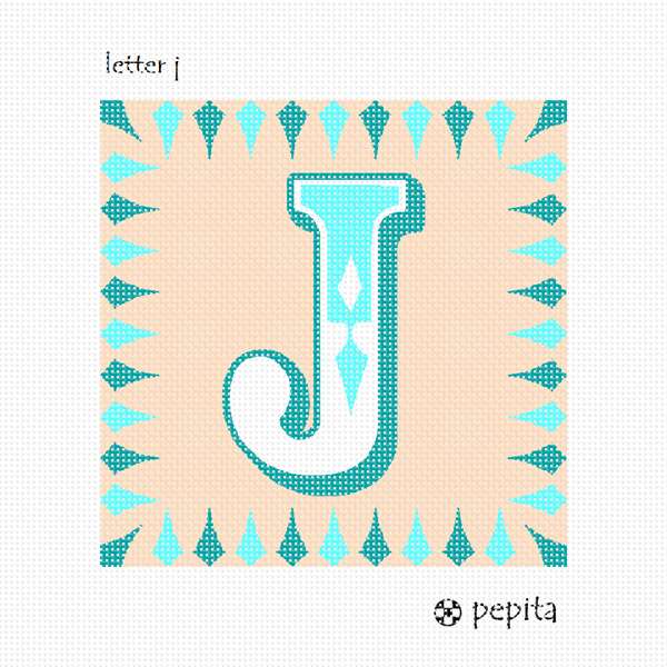 The letter J in a fancy font, surrounded by a matching border of elongated diamonds.