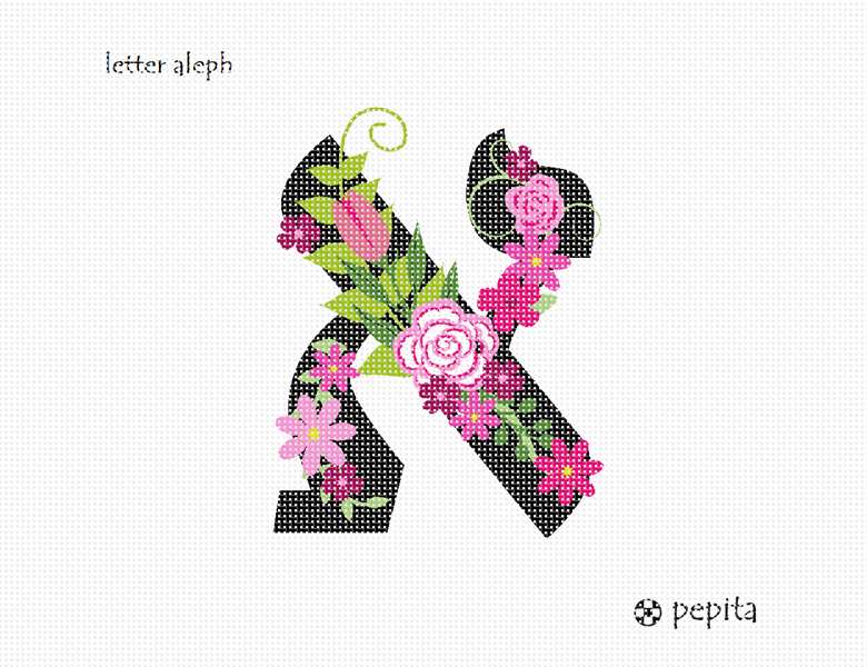 Letter Aleph in Hebrew. Decorative Floral monogram in all Hebrew letters available.