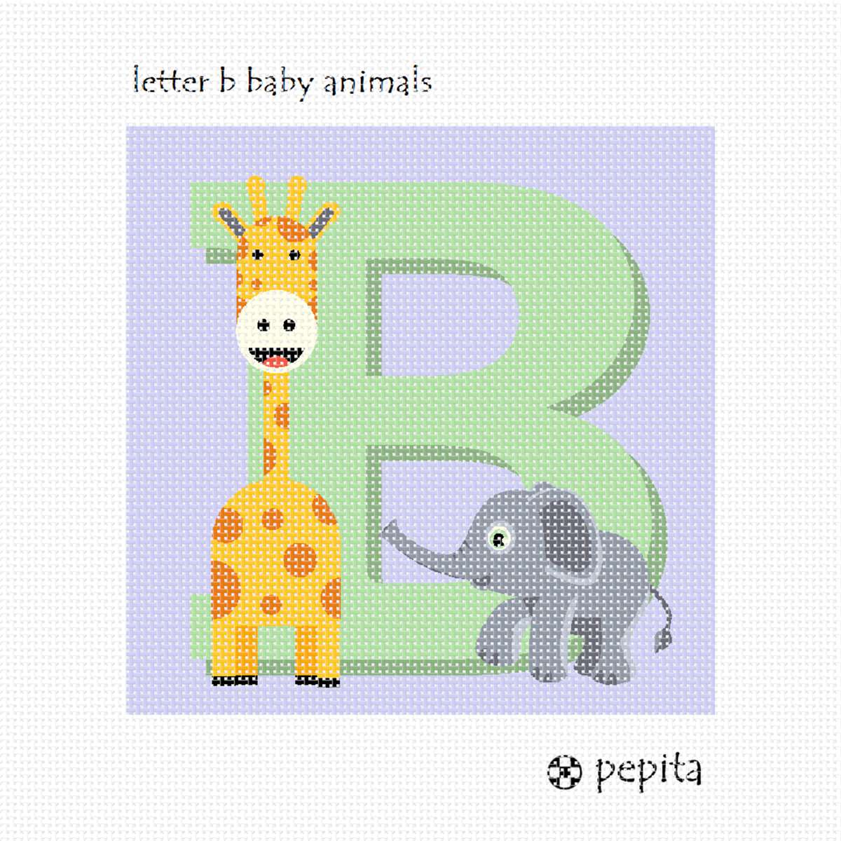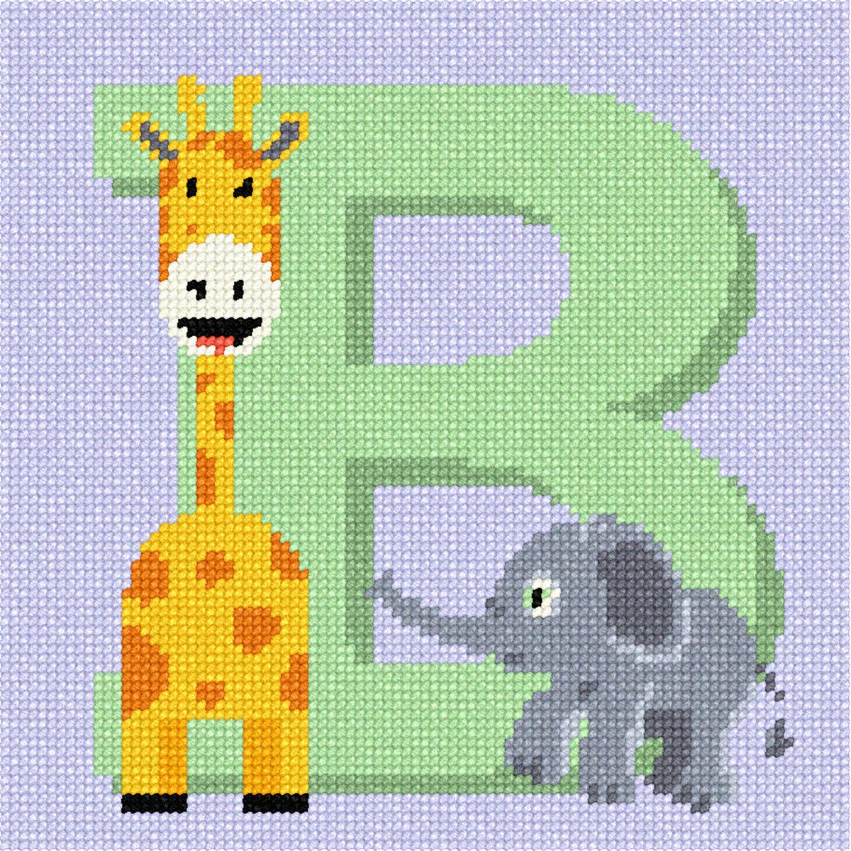 Alphabet initials to match safari theme nursery decor. This unisex design is adorable for any baby room. The tall giraffe and happy elephant will delight the stitcher as well as the baby. See coordinating lavender and sage designs. This is available in any English Alphabet letter.