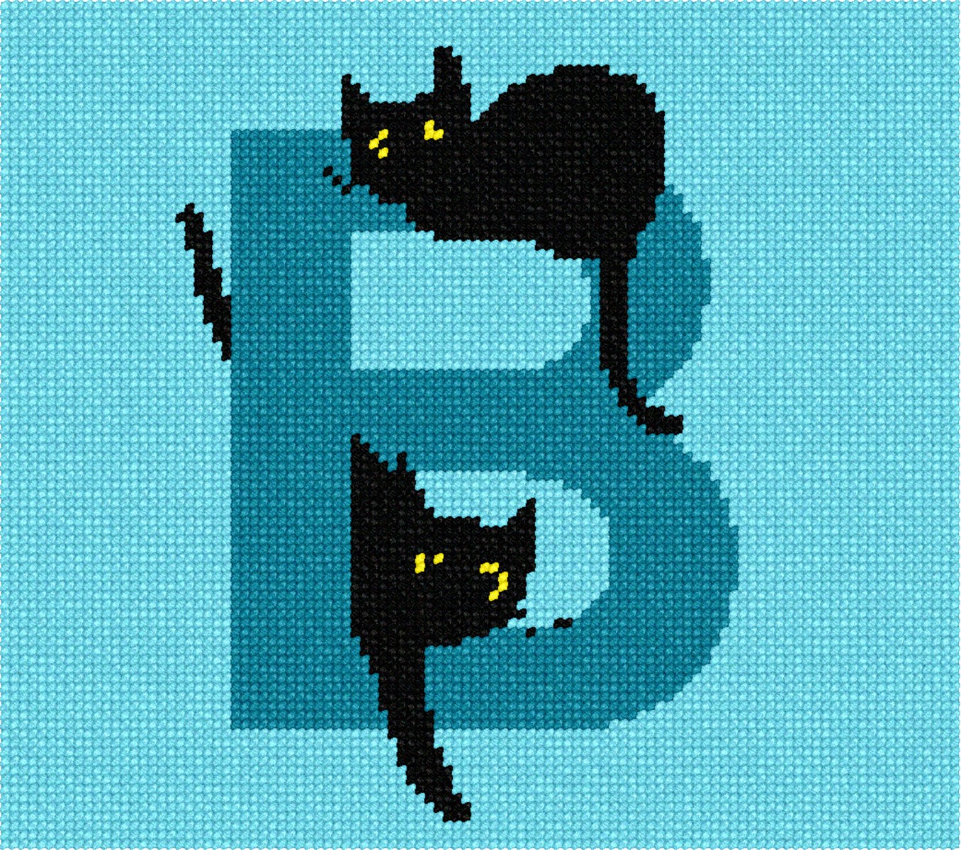 Not one cat, but two! And those yellow eyes are looking right at you. This needlepoint cats design is available in any initial.