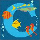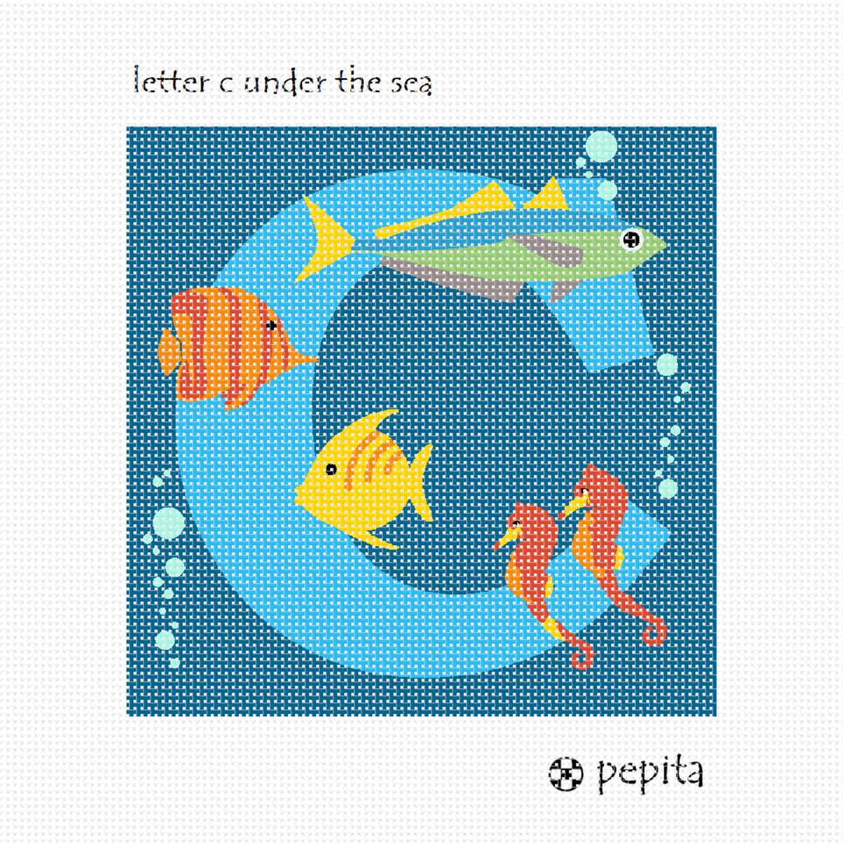 Many sea creatures call the ocean home. From giant whales to tiny tadpoles, marine life is active and fascinating for children and adults alike. All the animals interact and live together in the underwater ecosystem. Seahorses dance while schools of fish gracefully swim amongst the coral reefs. Stitch this letter C for your favorite budding marine biologist.