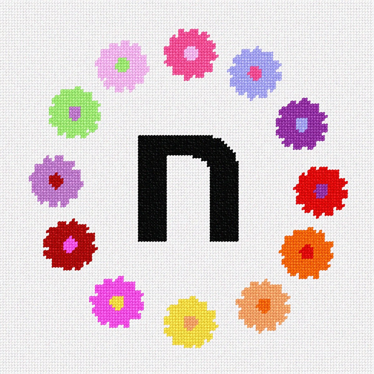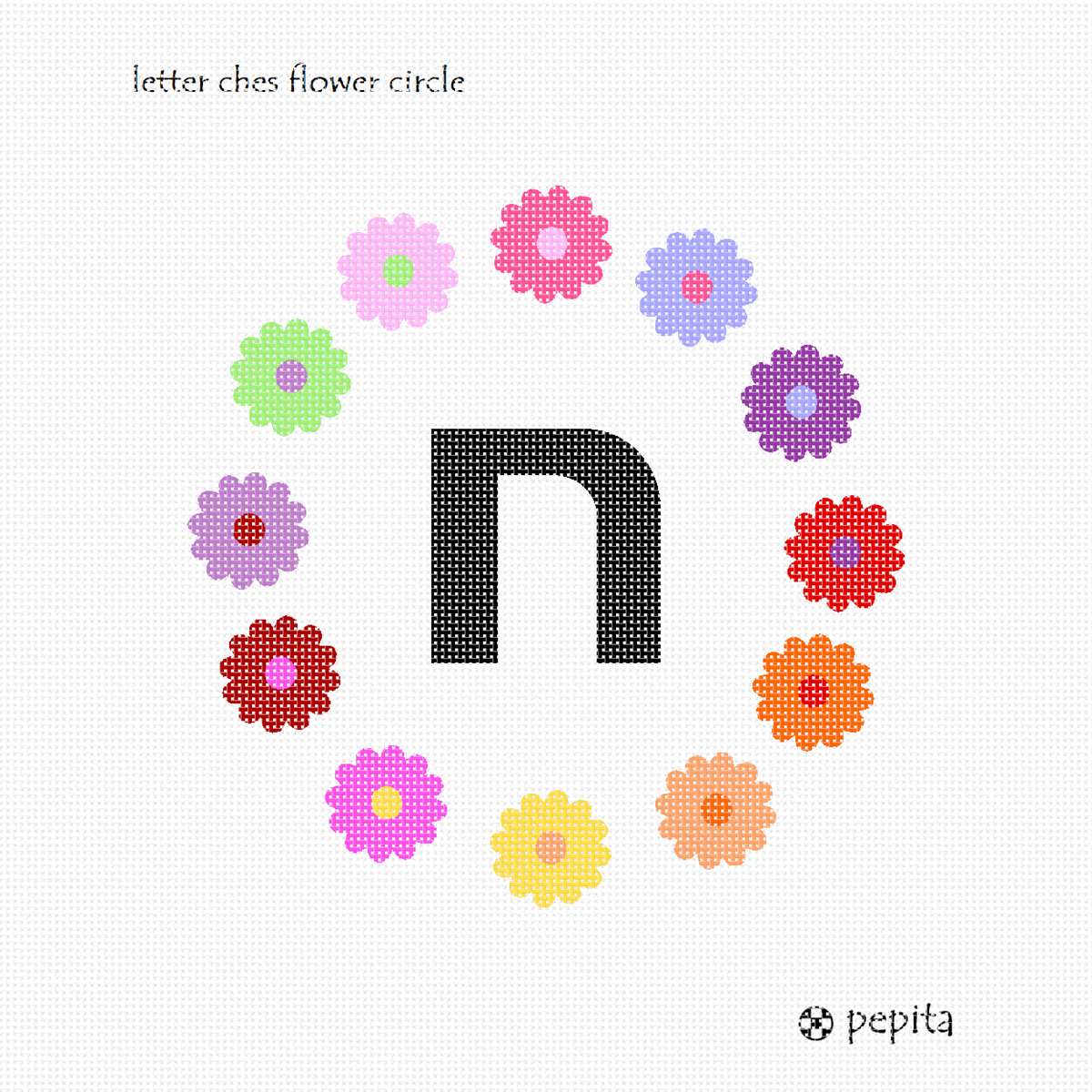 The Letter Ches from the Hebrew Alphabet with a whimsy floral border. This would make a fabulous personalized needlepoint pillow.