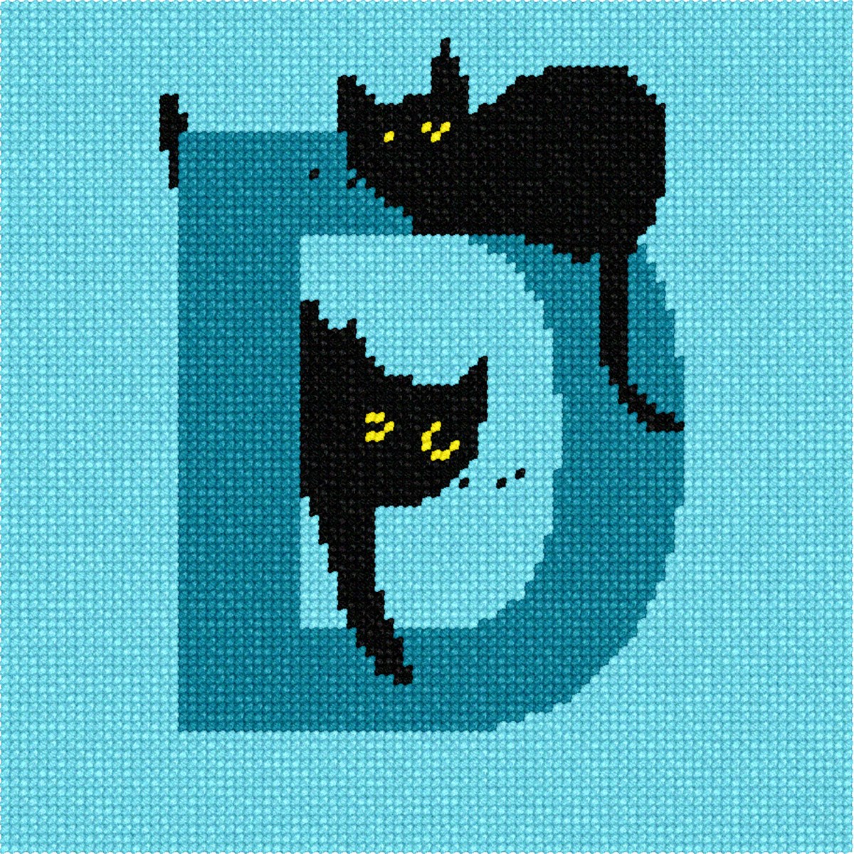Not one cat, but two! And those yellow eyes are looking right at you. This needlepoint cats design is available in any initial.