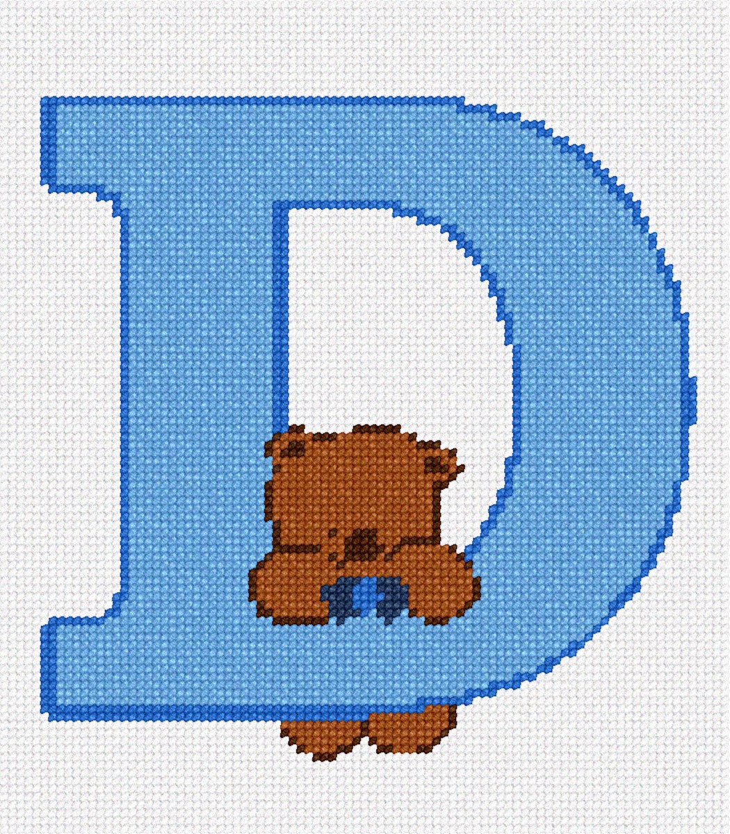Adorable alphabet letters with a teddy bear. This easy needlepoint is perfect for a beginner or as a gift for a child. Stitch one in the initial of their name. Available in all the letters of the ABC and in other colors too.