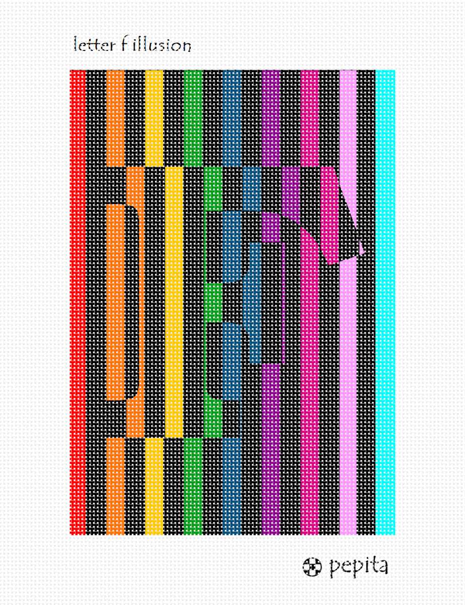 We have many designs in our "illusion" series. They are colorful and easy to stitch. This is a perfect design for a beginner. It is available in all 26 letters of the alphabet. Buy the kit, or just the plain canvas if you have lots of threads in your stash.
