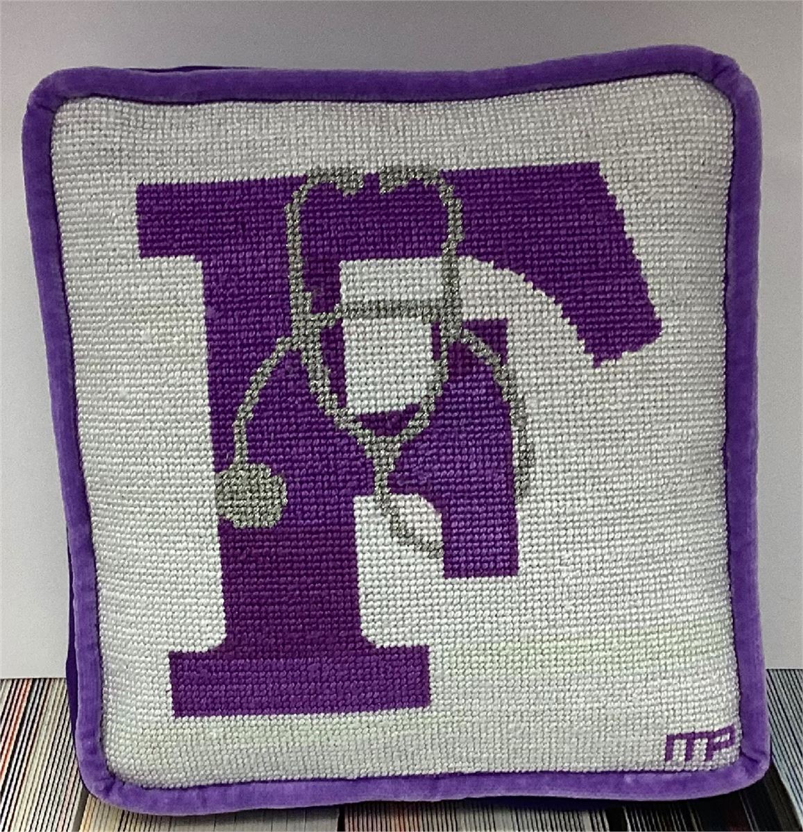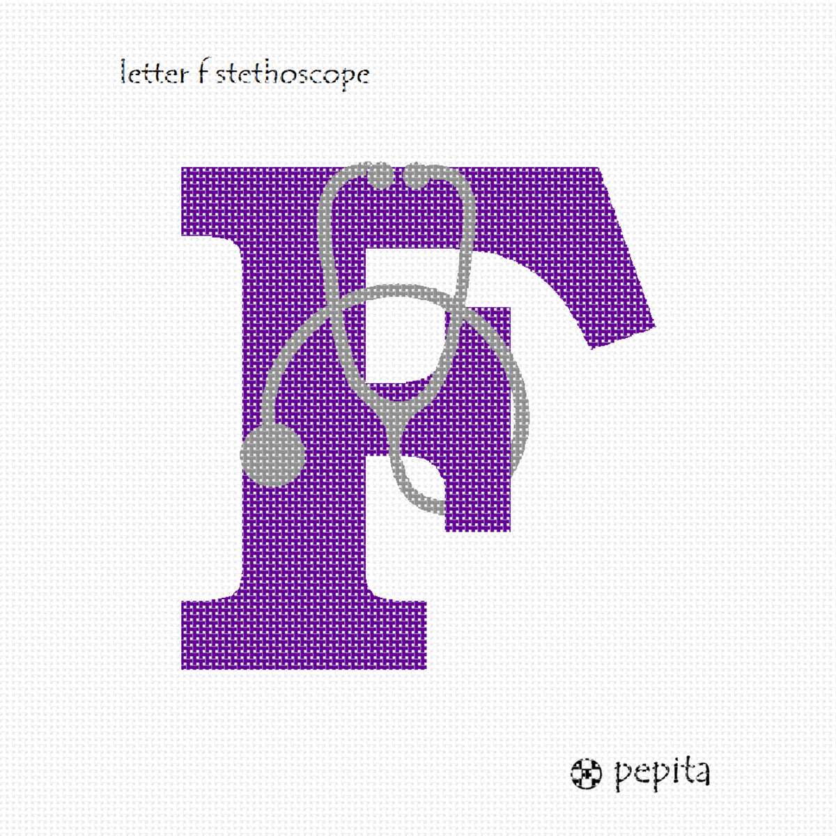 The Letter F with a stethoscope wrapped around it. Stitch this as a needlepoint gift for your doctor, nurse, paramedic, nurse practitioner, or anyone in the medical field. This style is available in all the letters of the ABC. It is cool!