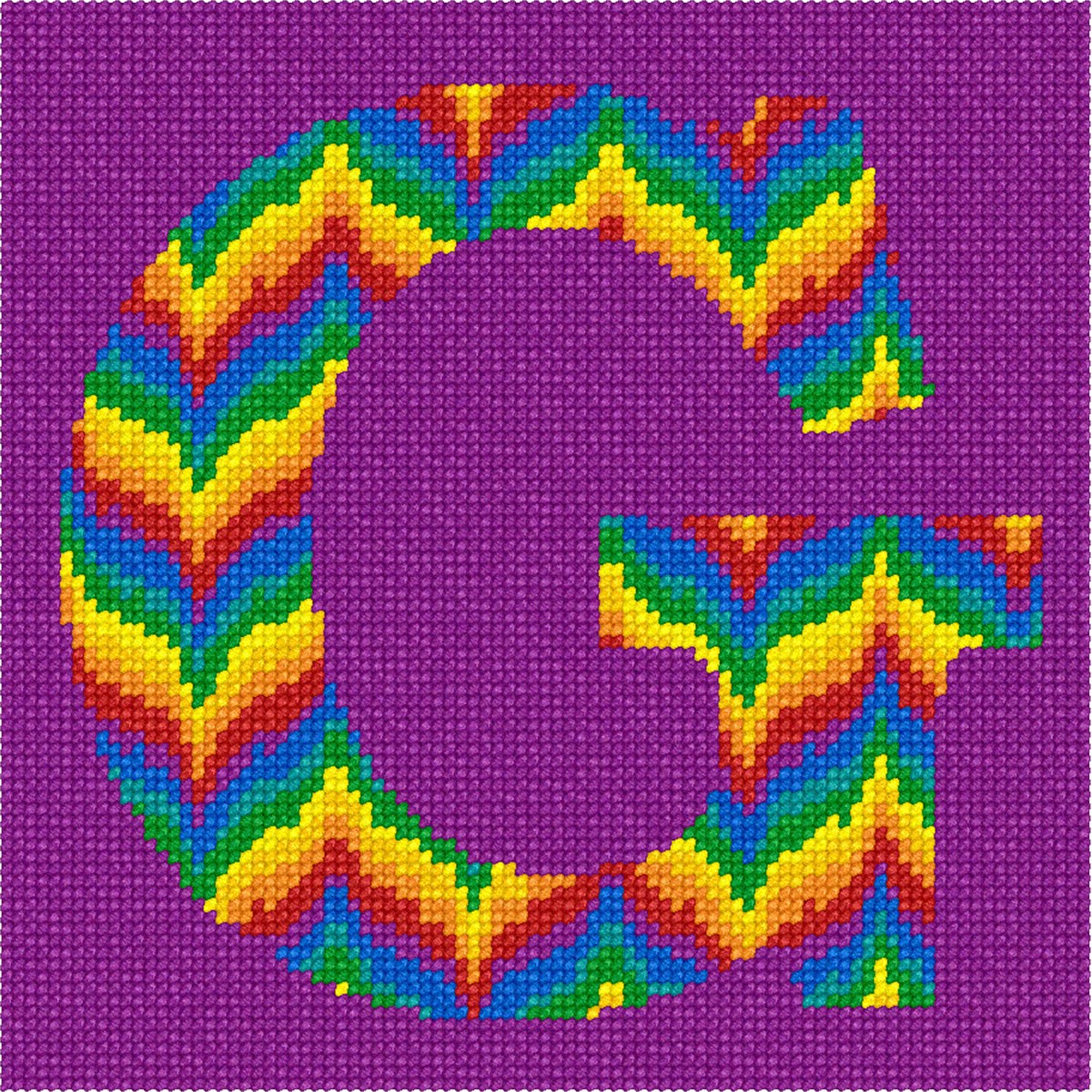 Alphabet in bright building block colors. Bargello is a type of needlepoint embroidery consisting of upright flat stitches laid in a mathematical pattern to create motifs. The name originates from a series of chairs found in the Bargello palace in Florence, which have a "flame stitch" pattern. Traditionally, Bargello was stitched in wool on canvas. Embroidery done this way is remarkably durable. It is well suited for use on pillows, upholstery and even carpets, but not for clothing. In most traditional pieces, all stitches are vertical with stitches going over two or more threads. About 100 languages use the same alphabet like in English which makes it one of the most widely used alphabets in the world. While some languages have a few more and others a few less, they all share the 23 core letters originally found in the Roman alphabet. The most commonly used letter is the letter E. The letter J was the most recent letter to be added to the alphabet, appearing in print as a distinct letter for the first time in 1633. A sentence which contains all 26 letters of the English alphabet is called a pangram. A famous pangram is: “The quick brown fox jumps over the lazy dog.” but there are even shorter ones such as: “Pack my box with five dozen liquor jugs.” Every letter of the alphabet has a wild, or at least interesting, story, often going back thousands of years. You can look it up on Wikipedia.