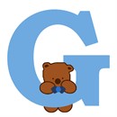 The image features the letter "G" in a bold, light blue hue with a charming teddy bear nestled at its base. The color palette of soft blues and warm browns creates a playful yet soothing atmosphere. The bear's subtle details and positioning within the letter add a whimsical touch to the overall design.