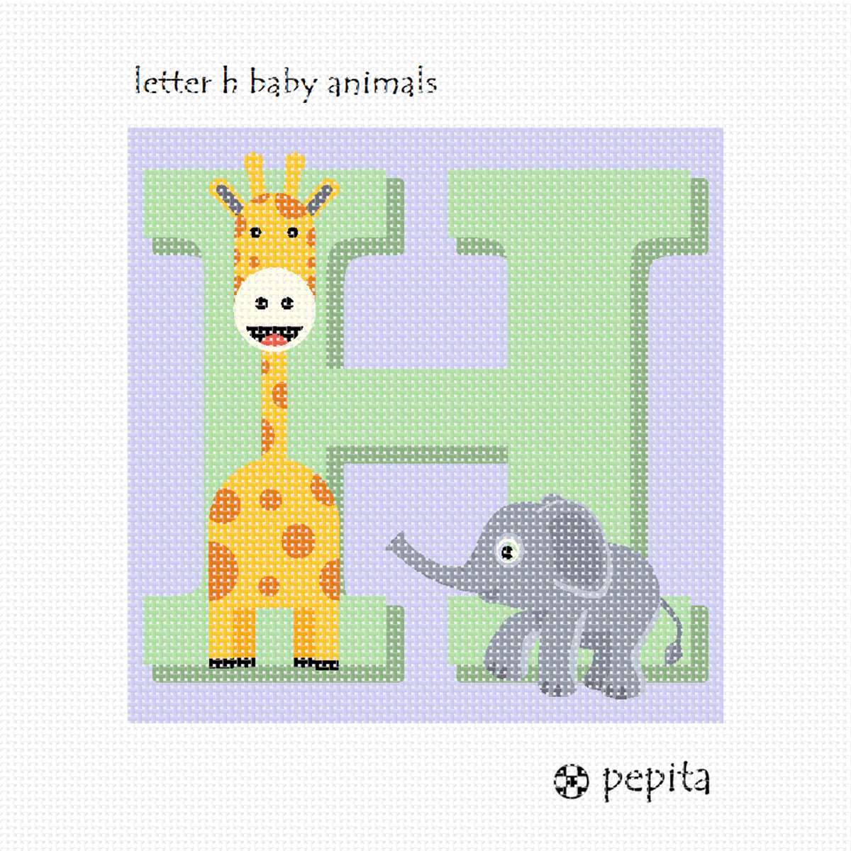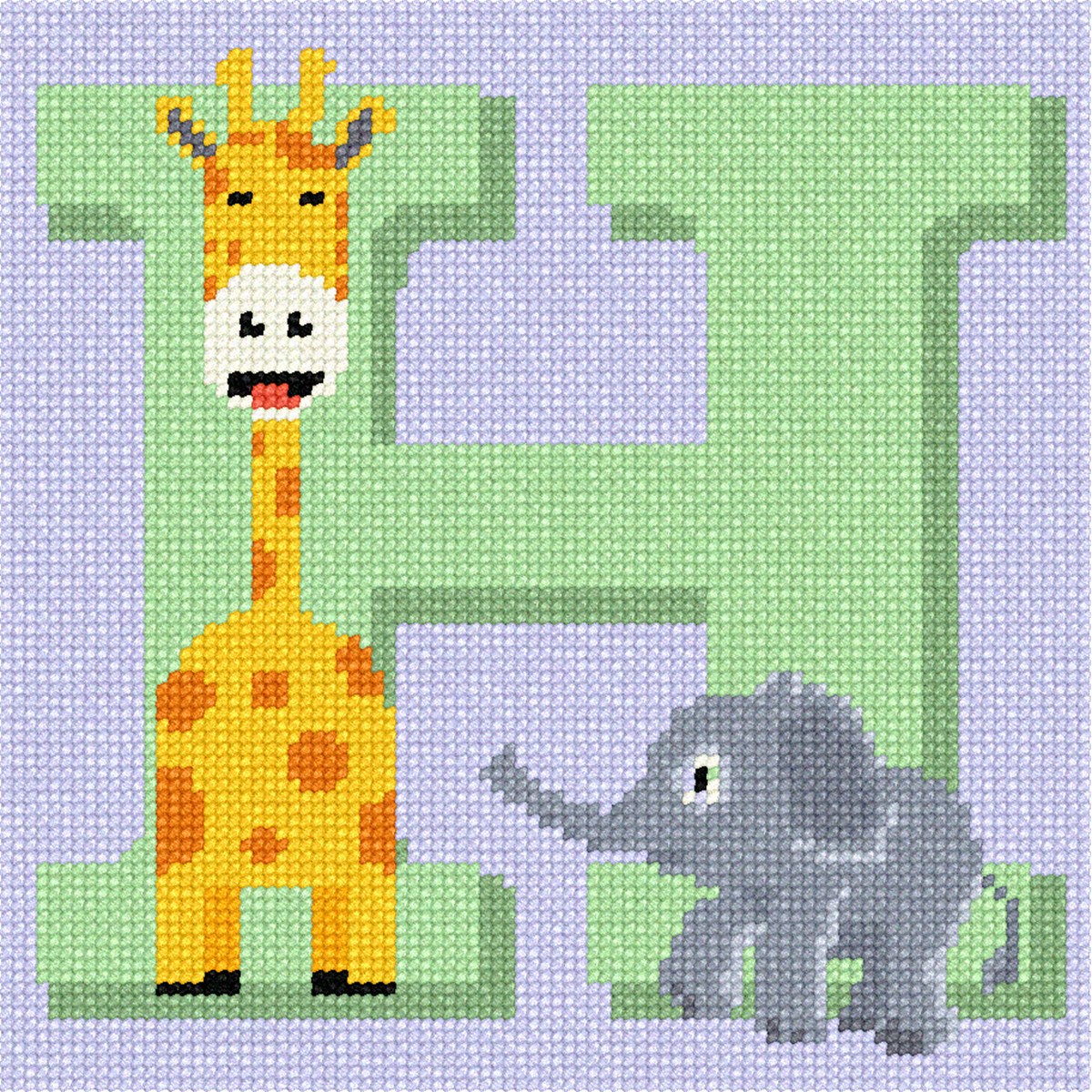 Alphabet initials to match safari theme nursery decor. This unisex design is adorable for any baby room. The tall giraffe and happy elephant will delight the stitcher as well as the baby. See coordinating lavender and sage designs. This is available in any English Alphabet letter.