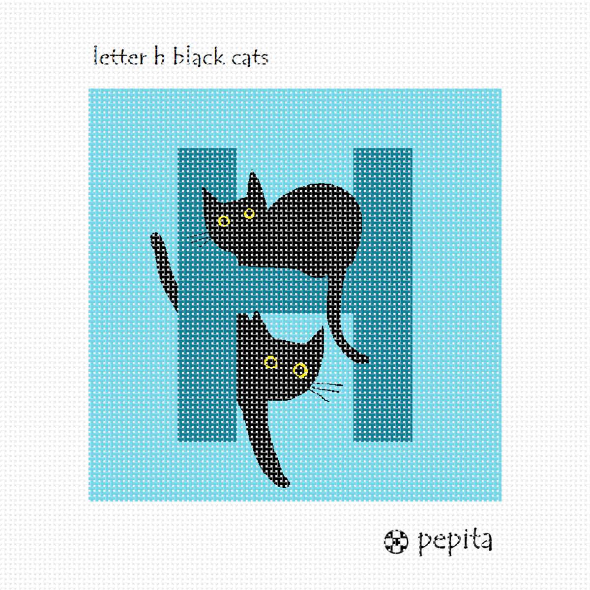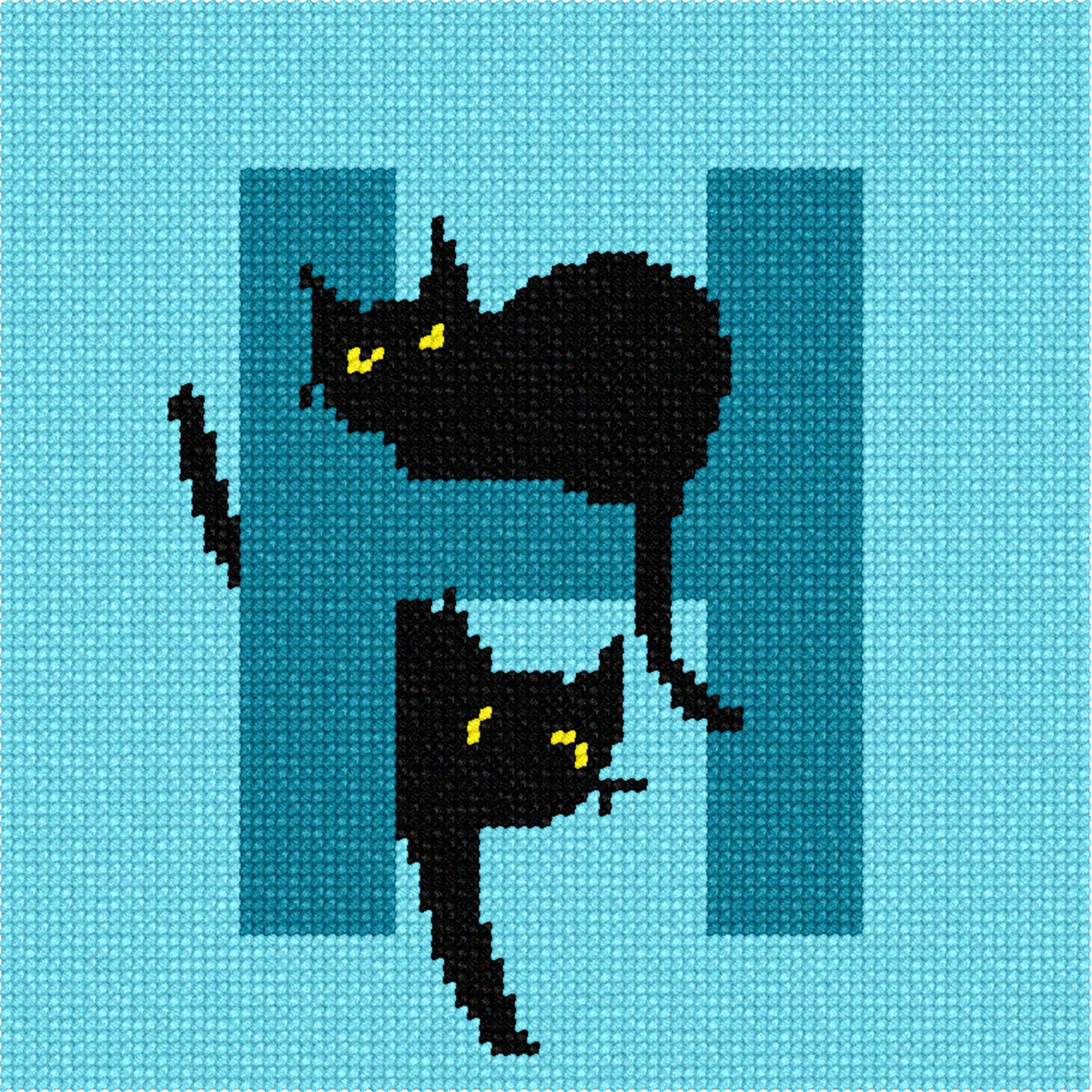 Not one cat, but two! And those yellow eyes are looking right at you. This needlepoint cats design is available in any initial.
