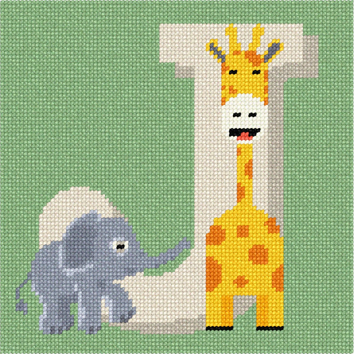 The image showcases a charming illustration of a cheerful giraffe and a playful elephant centered around the letter "J." The soft pastel palette with gentle greens and warm yellows creates an inviting and whimsical mood. Intricate details, such as the giraffe’s expressive spots and the elephant's endearing gaze, enhance the playful composition.