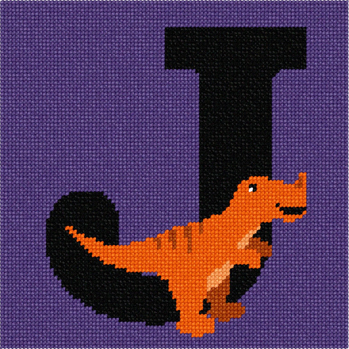 Is there a little or big guy in your life that adores everything dinosaur theme? This initial letter is a perfect choice. This orange dino decorates this letter J.