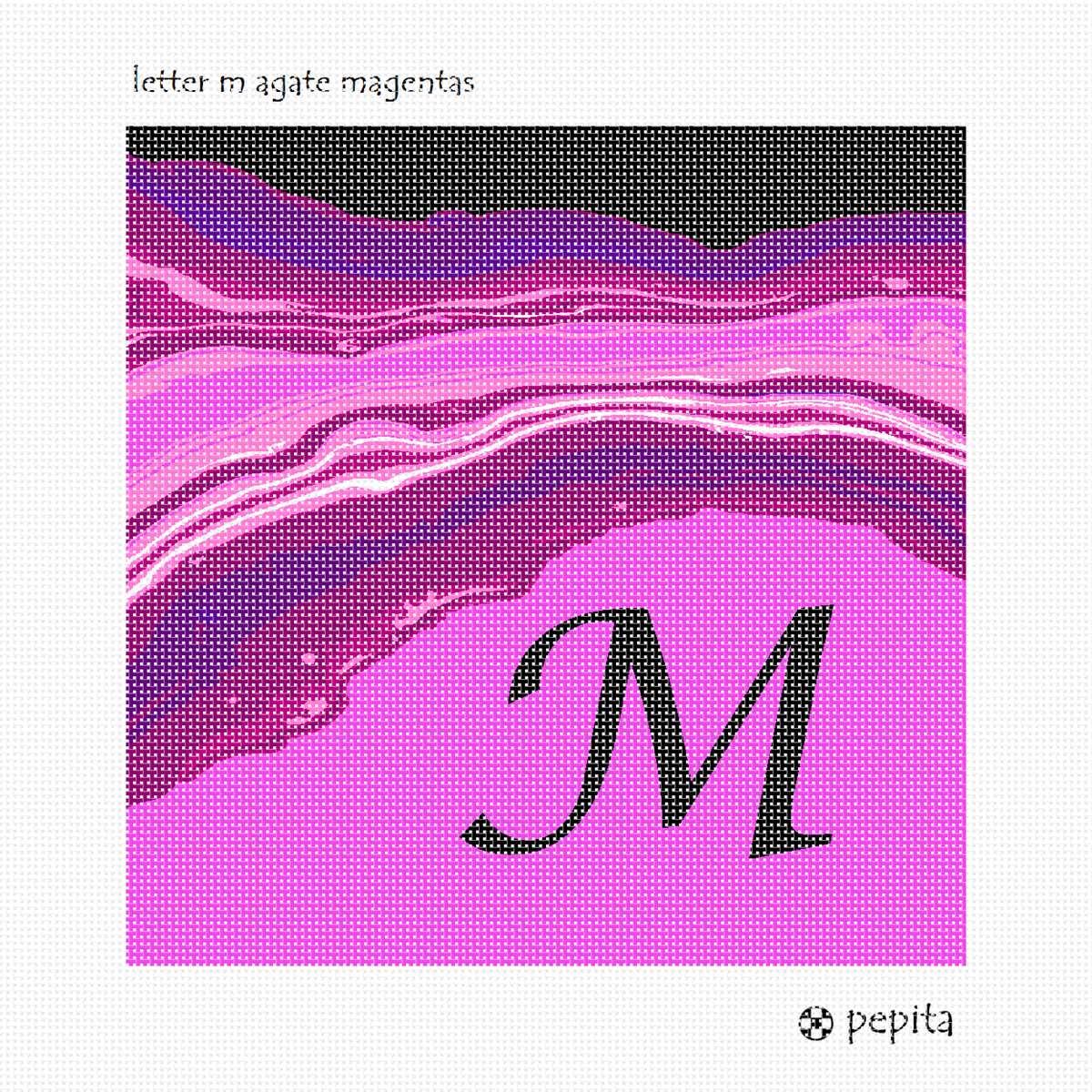 Letter M in bright hot pink colors. Perfect to stitch as a needlepoint pillow for a beloved person with the initial M.