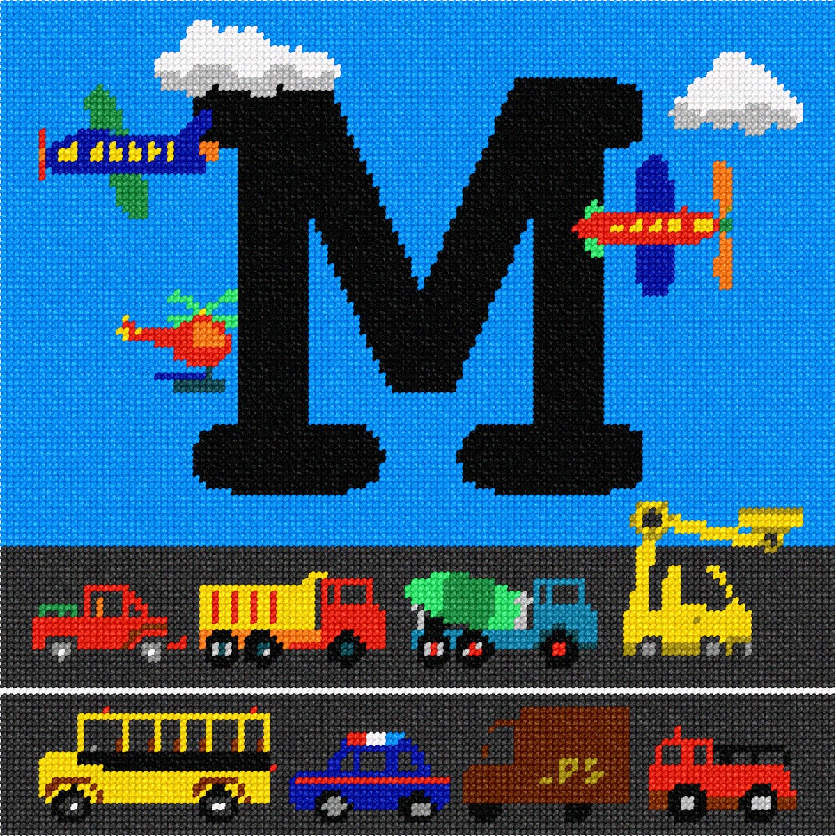 This Letter M is happening! An excavator, dump truck, fire engine, police car, pickup truck, mail truck, cement mixer, and a school bus are all riding along the highway. Helicoptors and airplanes are flying in the sky. It is one busy day in this city. This is a perfect holiday gift to stitch for the little or big boy in your life who is fascinated by cars, trucks, and all things that go. Available in all the letters of the alphabet. About 100 languages use the same alphabet like in English which makes it one of the most widely used alphabets in the world. While some languages have a few more and others a few less, they all share the 23 core letters originally found in the Roman alphabet. The most commonly used letter is the letter E. The letter J was the most recent letter to be added to the alphabet, appearing in print as a distinct letter for the first time in 1633. A sentence which contains all 26 letters of the English alphabet is called a pangram. A famous pangram is: “The quick brown fox jumps over the lazy dog.” but there are even shorter ones such as: “Pack my box with five dozen liquor jugs.” Every letter of the alphabet has a wild, or at least interesting, story, often going back thousands of years. You can look it up on Wikipedia.