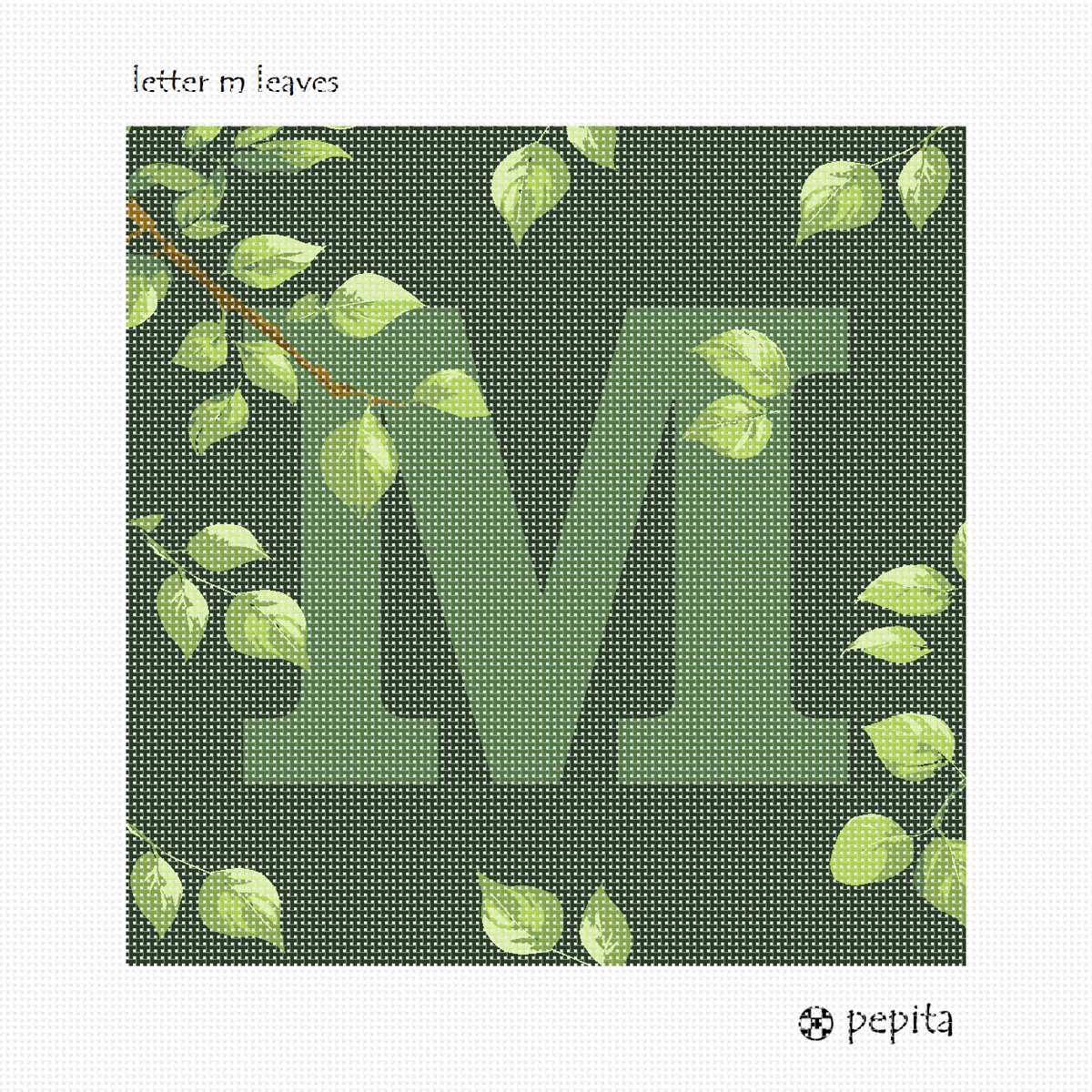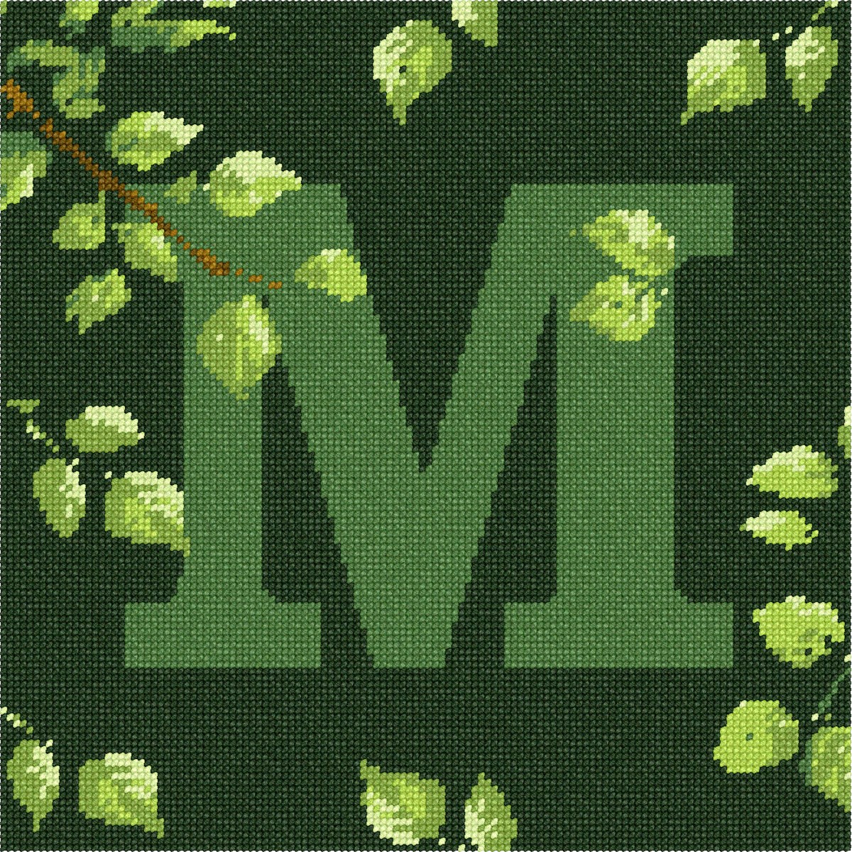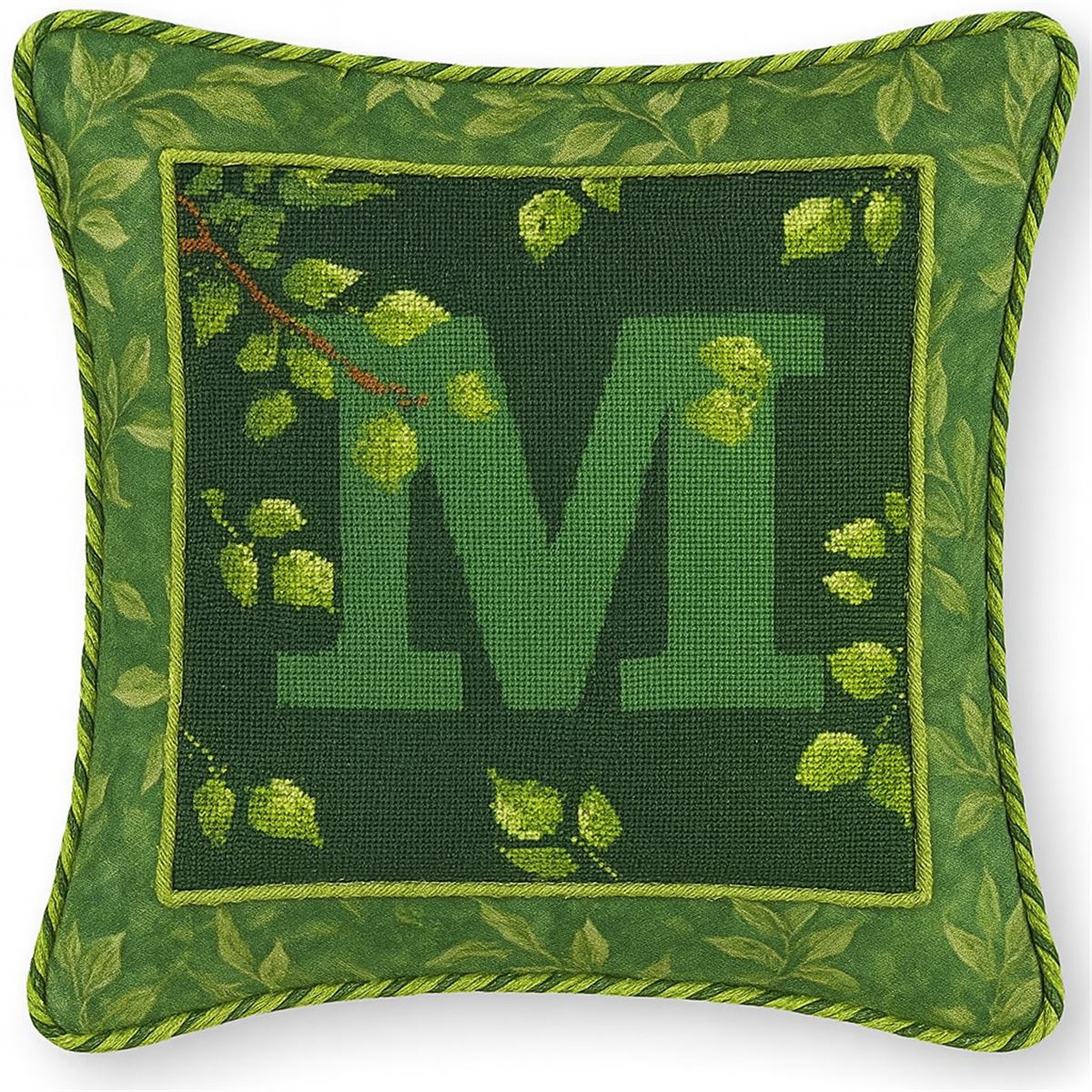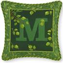Alphabet letters surrounded by foliage. They are leaves and branches almost resembling ivy. The Letter M blends in perfectly with the green coloring. This is available in all letters of the alphabet. This would make a perfect pillow as a gift for anyone. This is a timeless design.
