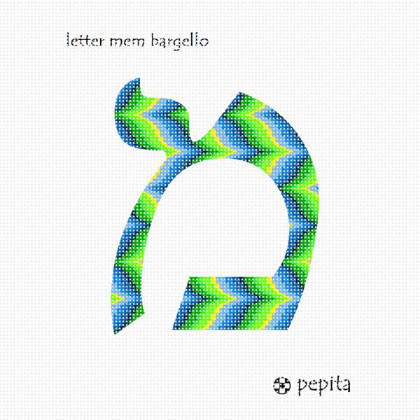 Hebrew Alphabet in Bargello. Bargello is a type of needlepoint embroidery consisting of upright flat stitches laid in a mathematical pattern to create motifs. The name originates from a series of chairs found in the Bargello palace in Florence, which have a "flame stitch" pattern. Traditionally, Bargello was stitched in wool on canvas. Embroidery done this way is remarkably durable. It is well suited for use on pillows, upholstery and even carpets, but not for clothing. In most traditional pieces, all stitches are vertical with stitches going over two or more threads.