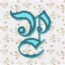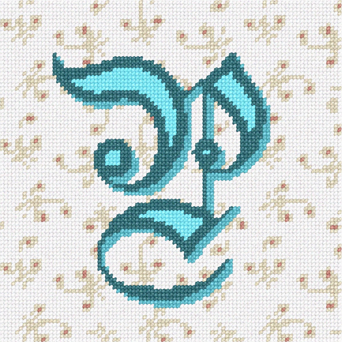 Fancy calligraphic letter P against background of line bouquets.