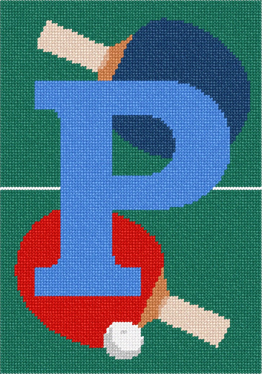 Ping pong is also called Table Tennis. It notably originates from the onomatopoeic sound of the ball that appeared in the Far East in 1884: 'ping' is imitative of the sound of a bat striking a ball and 'pong' equates to the sound of the bounce on the table. The game can be played at any level and regardless of skill level, it develops quickness of mind, faster reflexes, and uniquely activates portions of the brain that no other sport does. It can even be played in the comfort of one's home. Available in other alphabet letters and also with one racket.