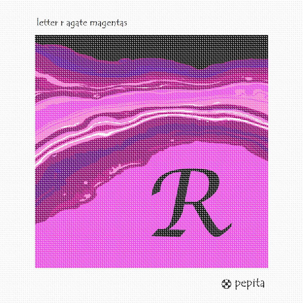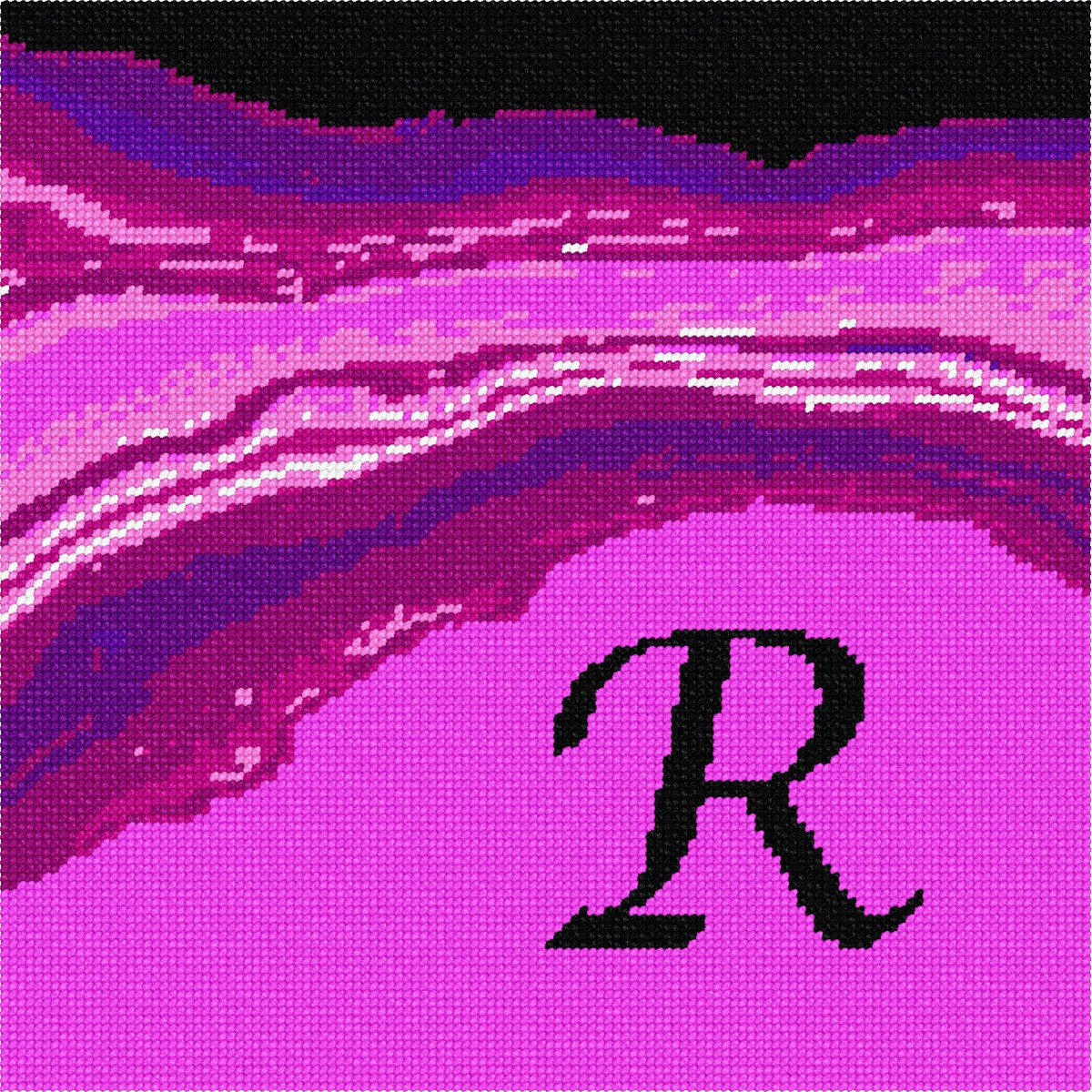 Letter R in bright hot pink colors. Perfect to stitch as a needlepoint pillow for a beloved person with this initial.