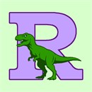 Letter R with a dinosaur in front of it.