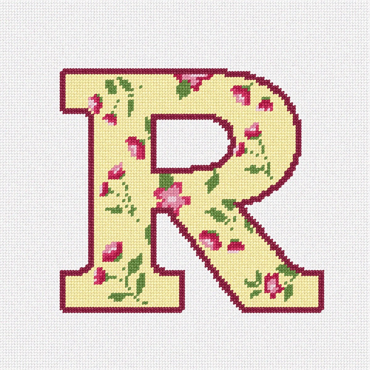 This lovely letter R reminds one of vintage dinnerware. The flowers are reminiscent of something in your grandmother's house. Is it the pattern of her kitchen curtains? Wallpaper? A knick-knack? Or maybe her porcelain coffee cups. Either way, this letter R is soothing. About 100 languages use the same alphabet like in English which makes it one of the most widely used alphabets in the world. While some languages have a few more and others a few less, they all share the 23 core letters originally found in the Roman alphabet. The most commonly used letter is the letter E. The letter J was the most recent letter to be added to the alphabet, appearing in print as a distinct letter for the first time in 1633. A sentence which contains all 26 letters of the English alphabet is called a pangram. A famous pangram is: “The quick brown fox jumps over the lazy dog.” but there are even shorter ones such as: “Pack my box with five dozen liquor jugs.” Every letter of the alphabet has a wild, or at least interesting, story, often going back thousands of years. You can look it up on Wikipedia.