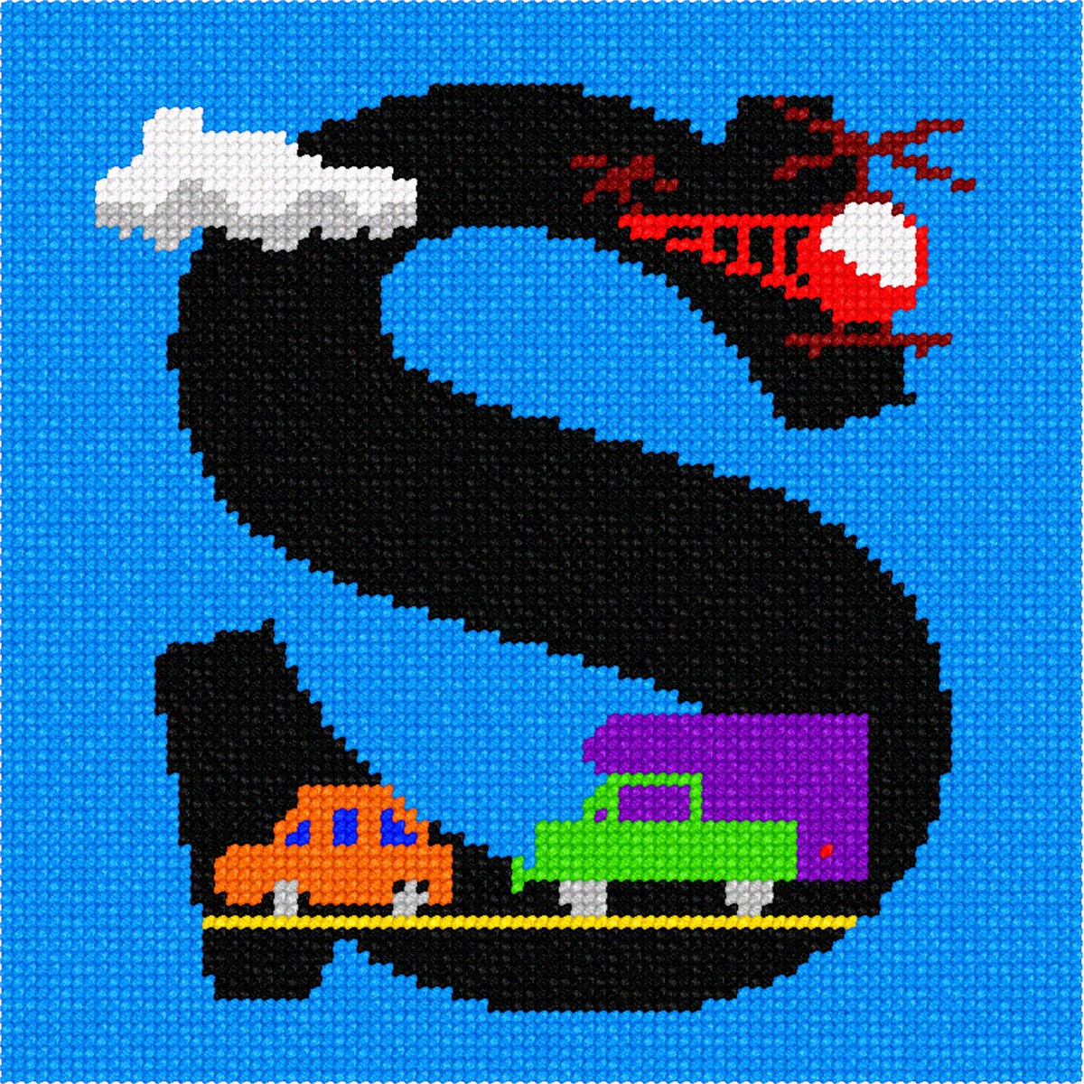 The letter S for city folk. Includes helicopter, truck and car. About 100 languages use the same alphabet like in English which makes it one of the most widely used alphabets in the world. While some languages have a few more and others a few less, they all share the 23 core letters originally found in the Roman alphabet. The most commonly used letter is the letter E. The letter J was the most recent letter to be added to the alphabet, appearing in print as a distinct letter for the first time in 1633. A sentence which contains all 26 letters of the English alphabet is called a pangram. A famous pangram is: “The quick brown fox jumps over the lazy dog.” but there are even shorter ones such as: “Pack my box with five dozen liquor jugs.” Every letter of the alphabet has a wild, or at least interesting, story, often going back thousands of years. You can look it up on Wikipedia.