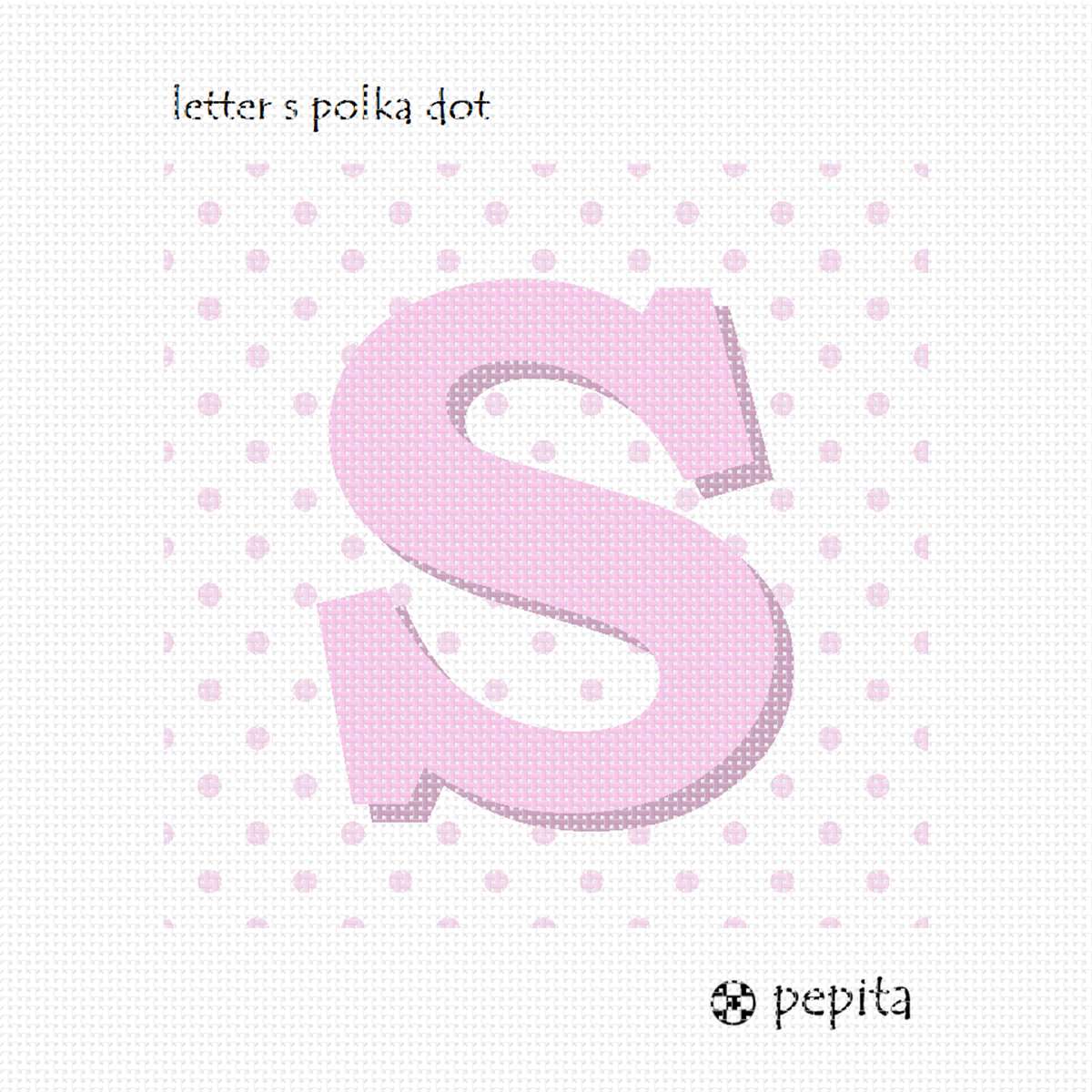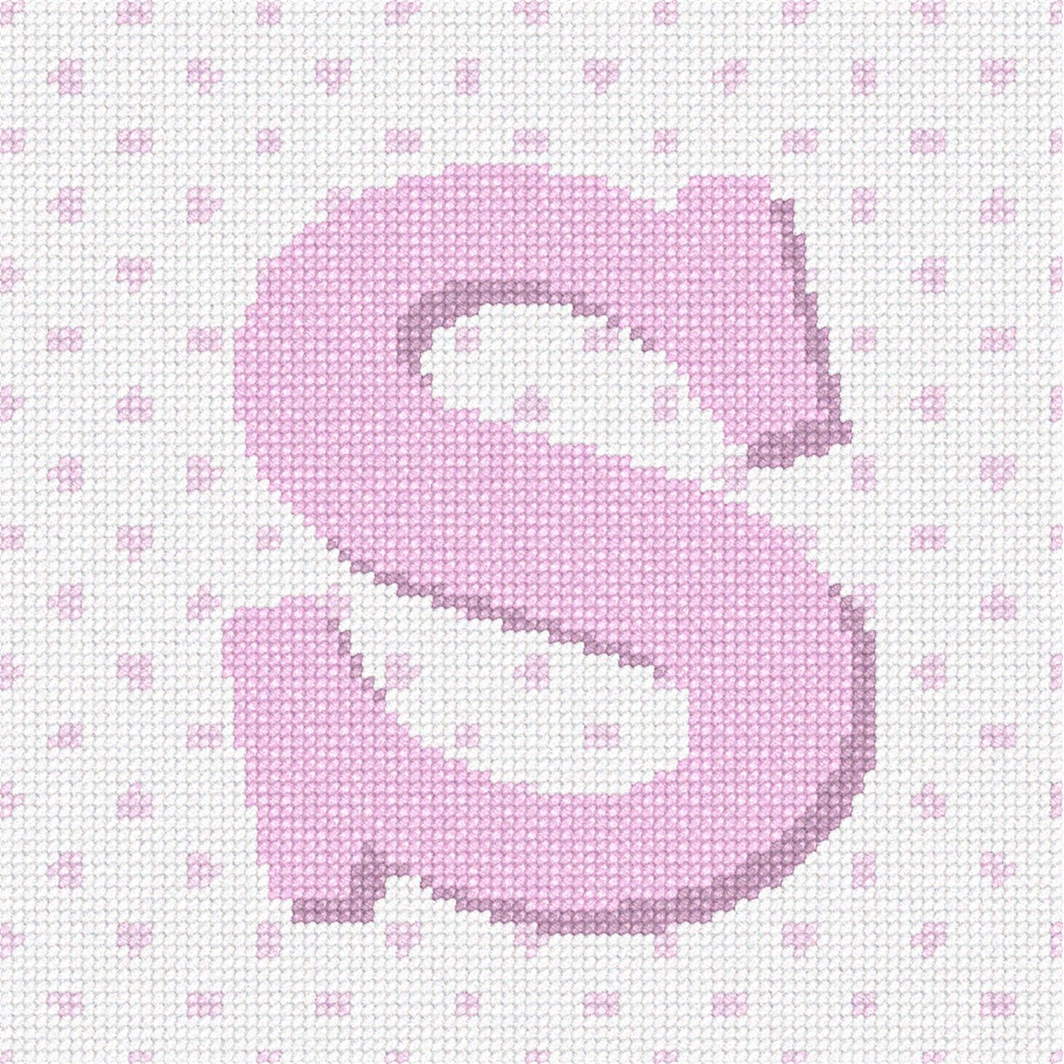 The letter S in pink against a polka-dot background