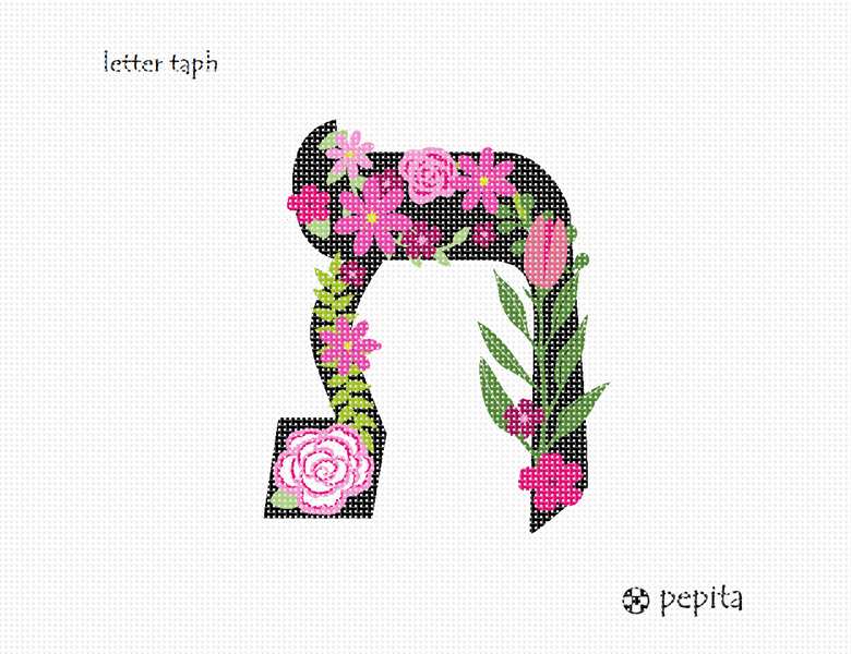Letter Tuf in Hebrew. Decorative Floral monogram in all Hebrew letters available.