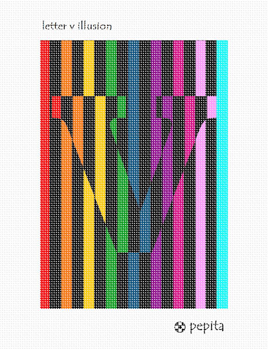 We have many designs in our "illusion" series. They are colorful and easy to stitch. This is a perfect design for a beginner. It is available in all 26 letters of the alphabet. Buy the kit, or just the plain canvas if you have lots of threads in your stash.