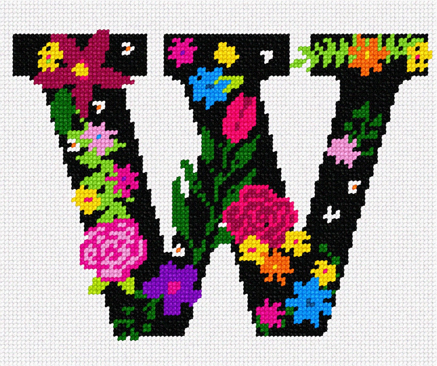 The capital letter W sprouting bold and bright colorful flowers. About 100 languages use the same alphabet like in English which makes it one of the most widely used alphabets in the world. While some languages have a few more and others a few less, they all share the 23 core letters originally found in the Roman alphabet. The most commonly used letter is the letter E. The letter J was the most recent letter to be added to the alphabet, appearing in print as a distinct letter for the first time in 1633. A sentence which contains all 26 letters of the English alphabet is called a pangram. A famous pangram is: “The quick brown fox jumps over the lazy dog.” but there are even shorter ones such as: “Pack my box with five dozen liquor jugs.” Every letter of the alphabet has a wild, or at least interesting, story, often going back thousands of years. You can look it up on Wikipedia.