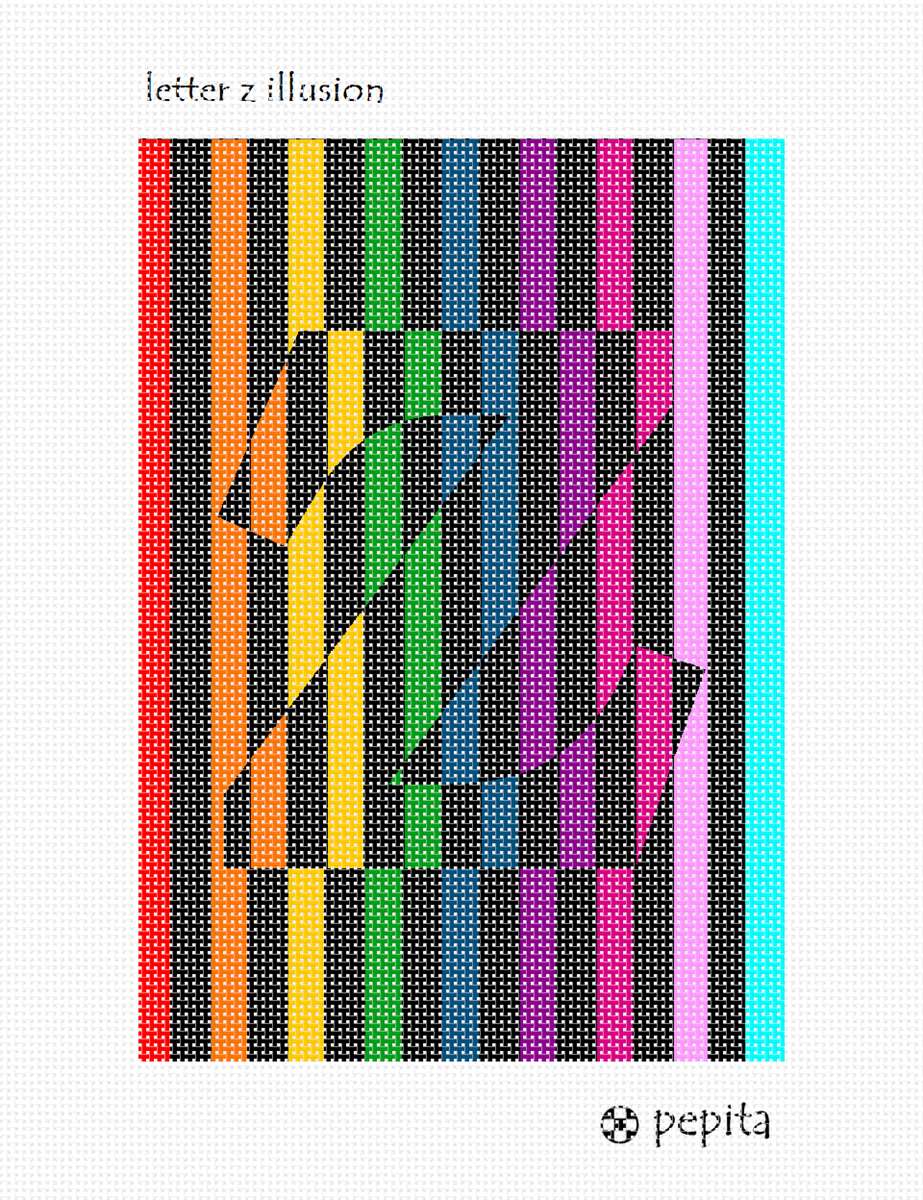 We have many designs in our "illusion" series. They are colorful and easy to stitch. This is a perfect design for a beginner. It is available in all 26 letters of the alphabet. Buy the kit, or just the plain canvas if you have lots of threads in your stash.