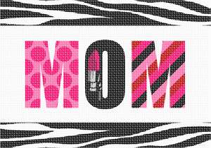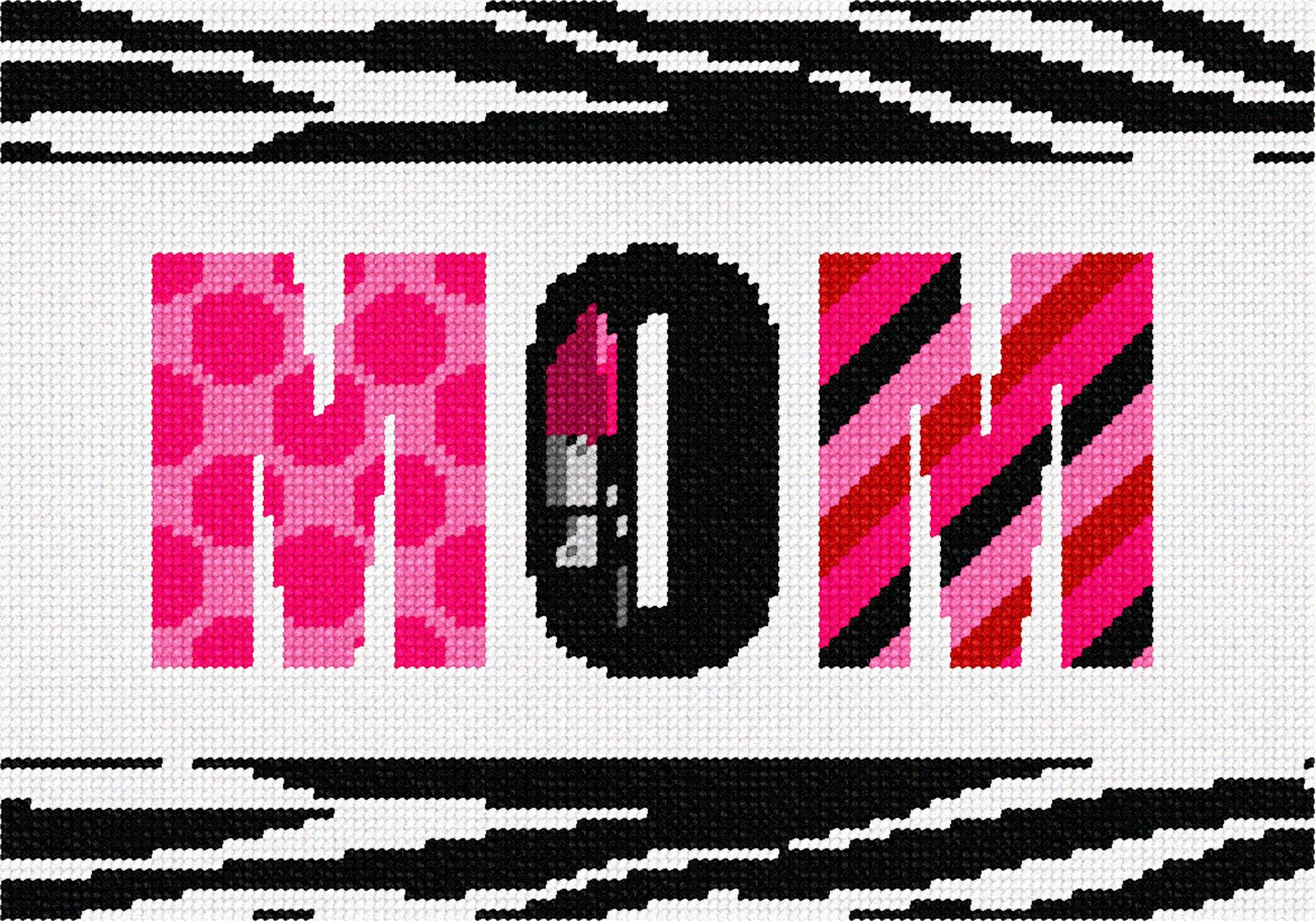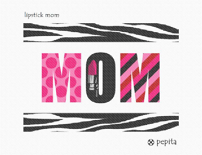 Celebrate Mom in lipstick and zebra themes. A perfect needlepoint for Mother's Day or Mom's birthday.