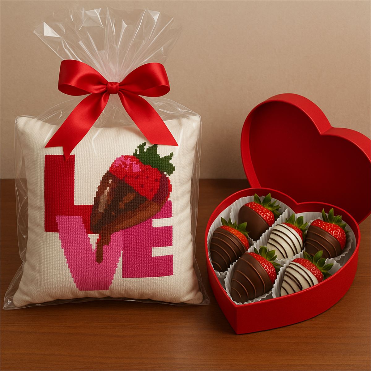 Chocolate-dipped strawberry needlepoint for the love of your life!